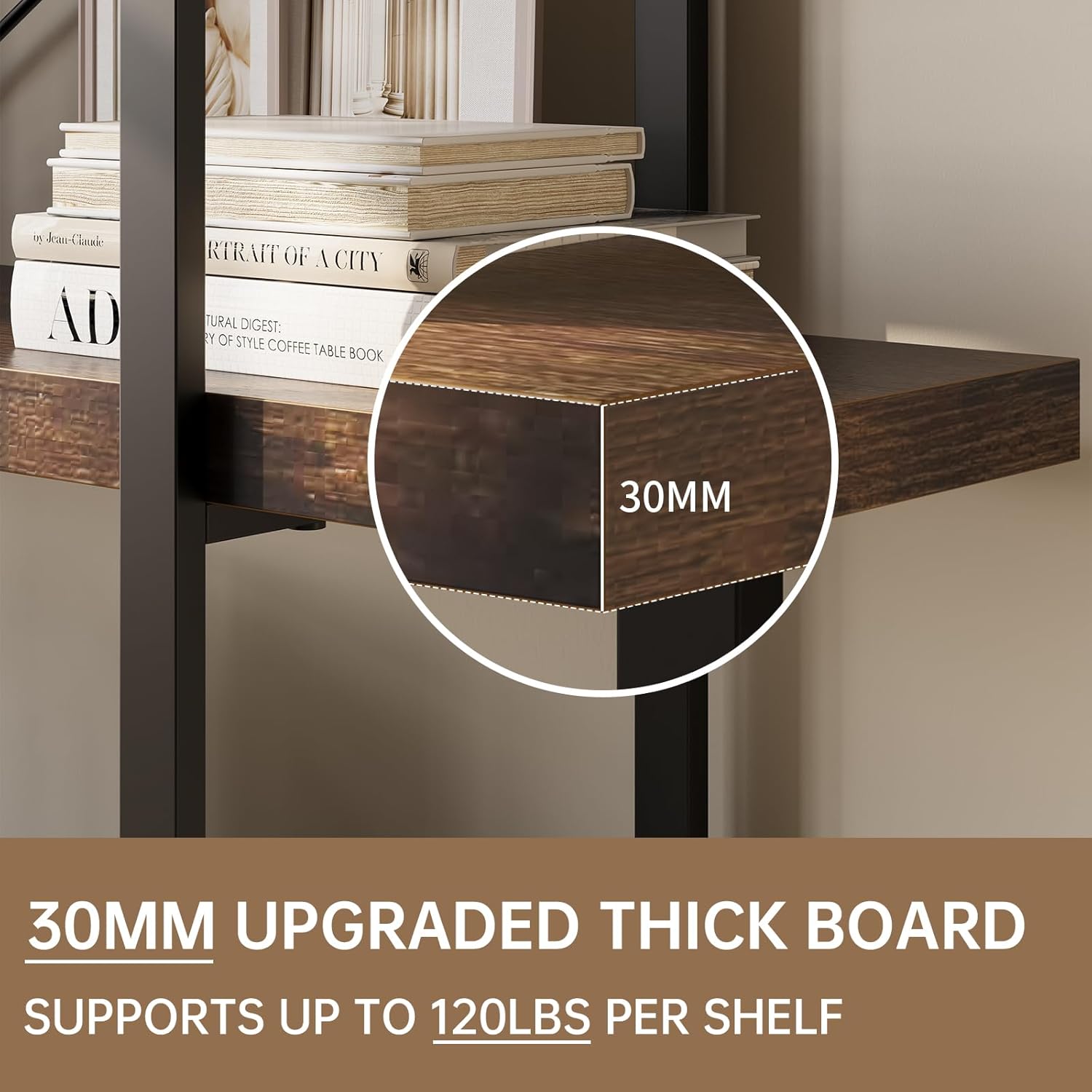 Versatile Industrial Design: Expertly crafted with high-quality metal and rich brown wood shelves, this five-tier bookshelf seamlessly blends sturdy construction with an industrial charm that complements various decor styles, from modern to rustic