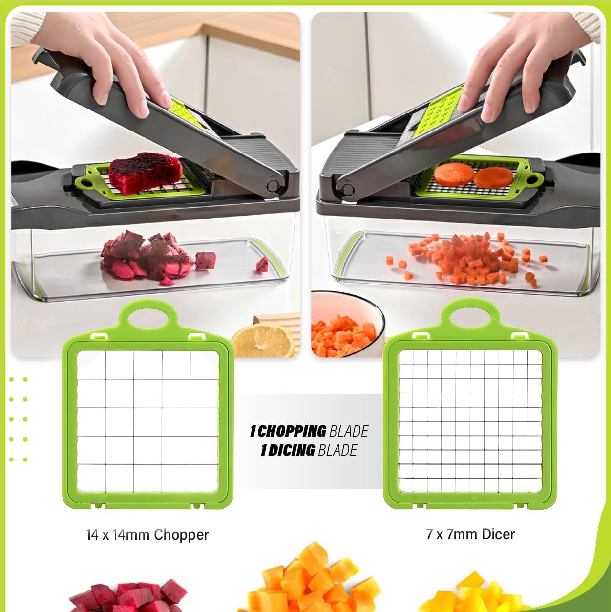 Heavy-Duty Vegetable Chopper | 14-IN-1 | Super-Sharp, Ultra-Hardened & Never-Rust Blades | Military-Grade, Chemical-Free & Non-Toxic Materials Construction