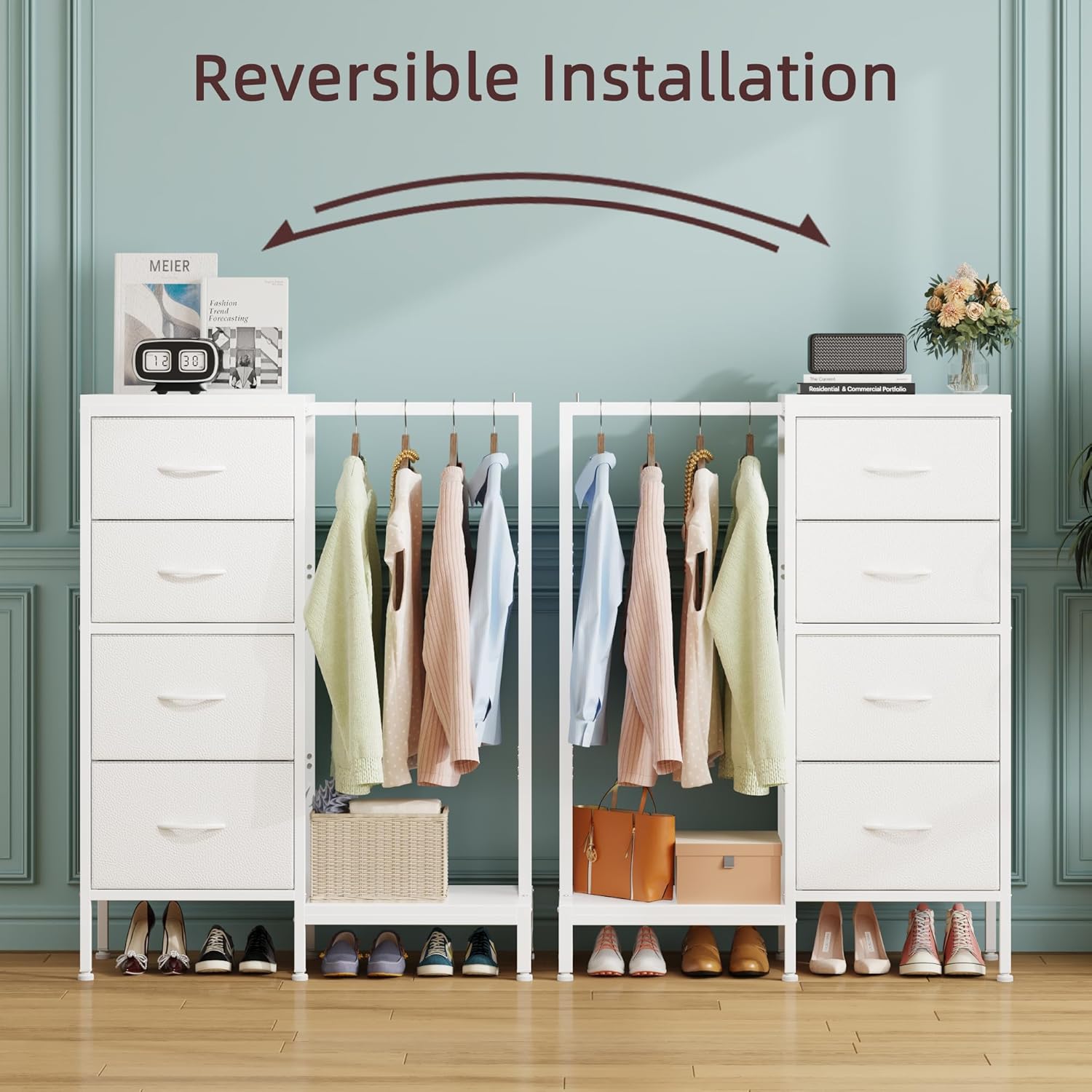 【Reversible Installation】This 4 drawer closet organizers and storage can be installed reversible based on your preference. It comes with clear installation instructions and includes an installation video