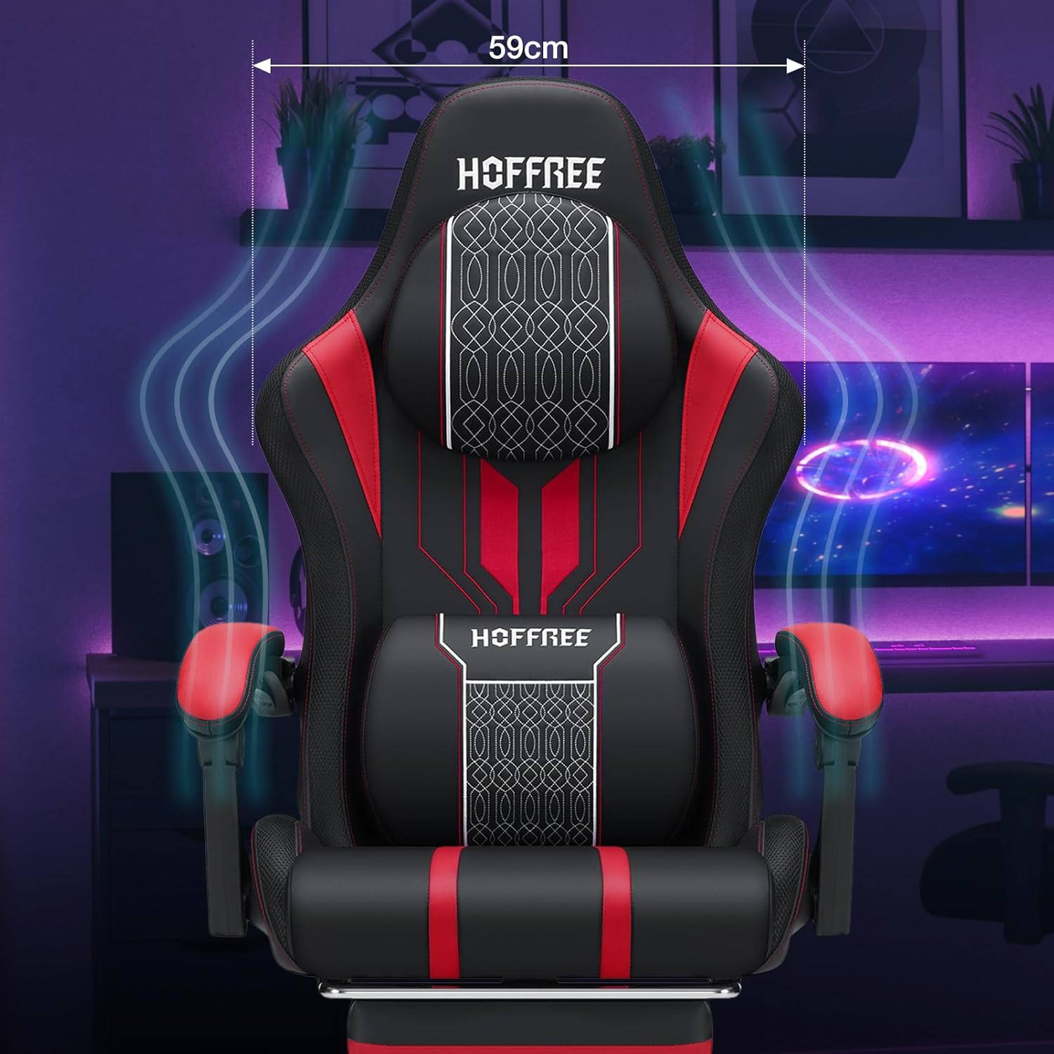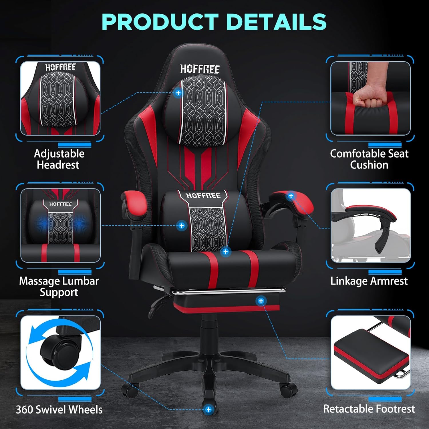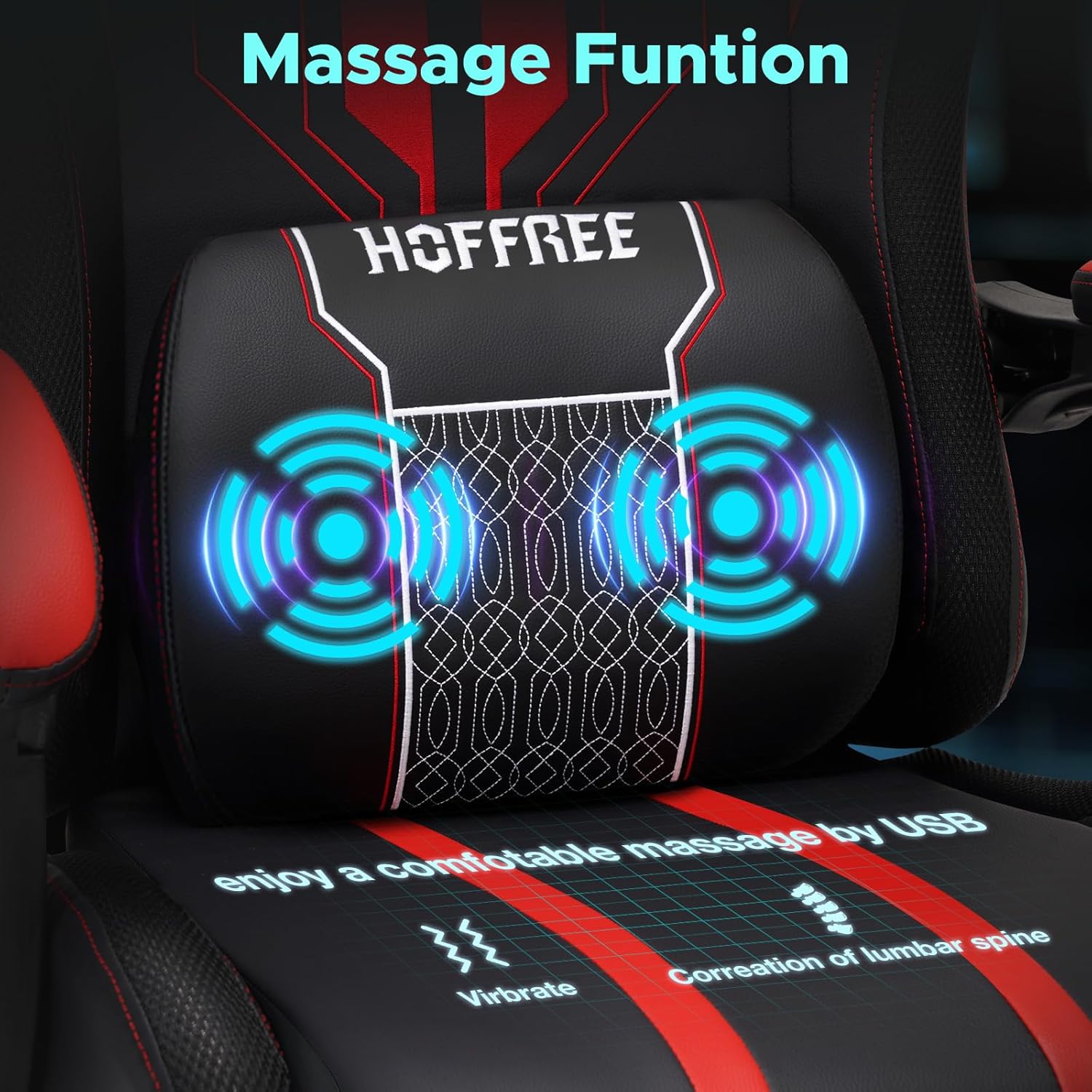 HOFFREE Gaming Chair Massage Big and Tall Gaming Chairs with Footrest 400lb for Adults Heavy People Computer Gamer Chair Red and Black