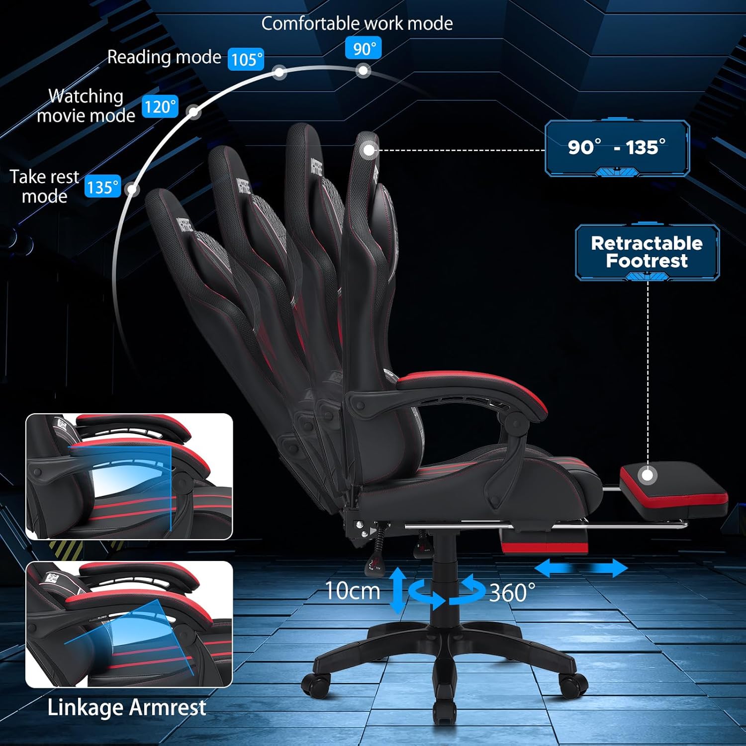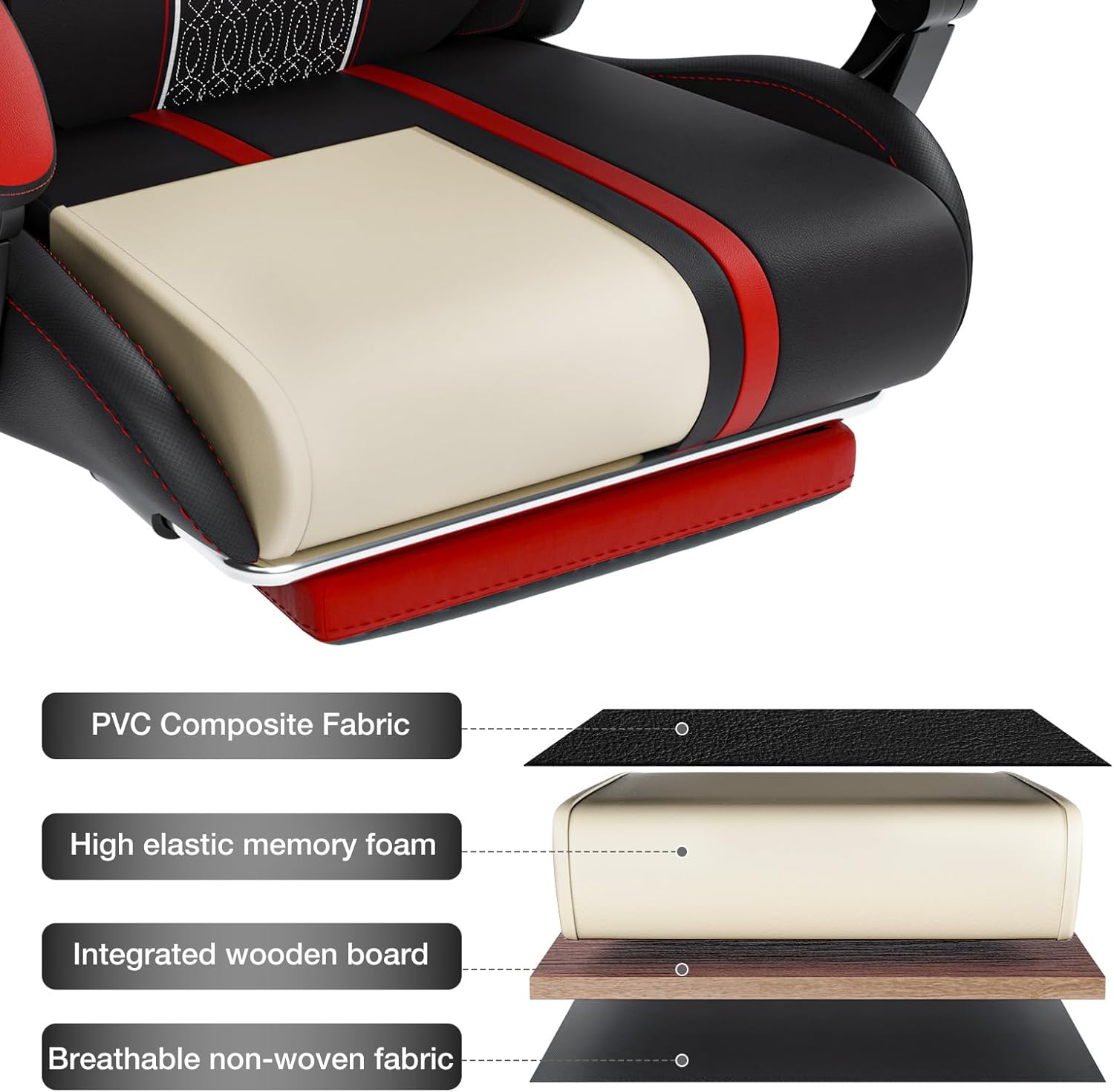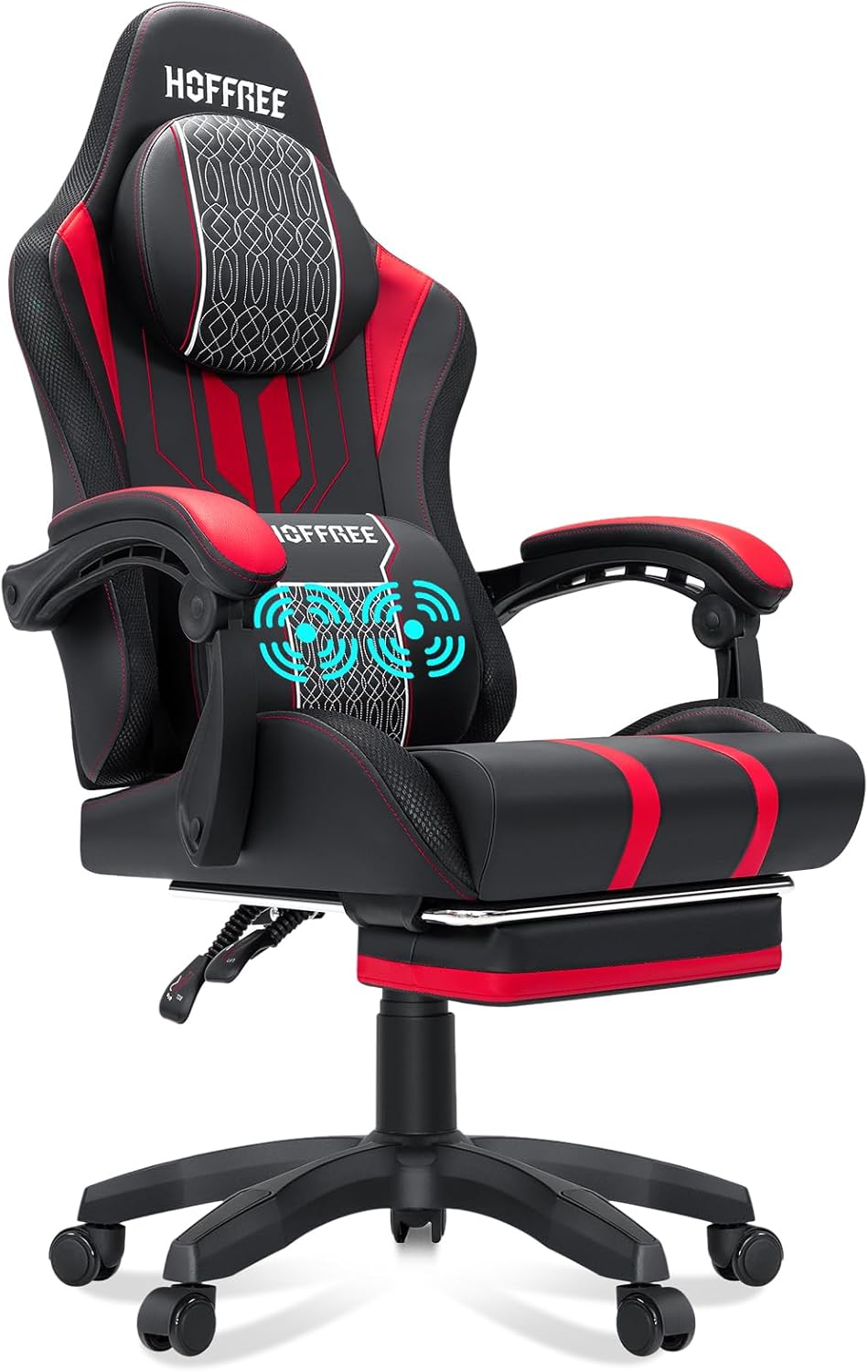 HOFFREE Gaming Chair Massage Big and Tall Gaming Chairs with Footrest 400lb for Adults Heavy People Computer Gamer Chair Red and Black