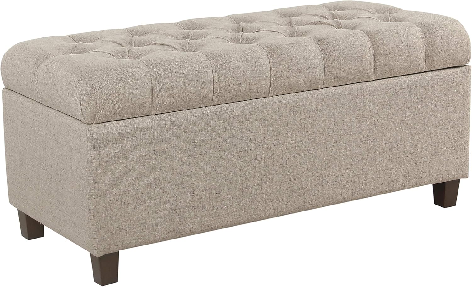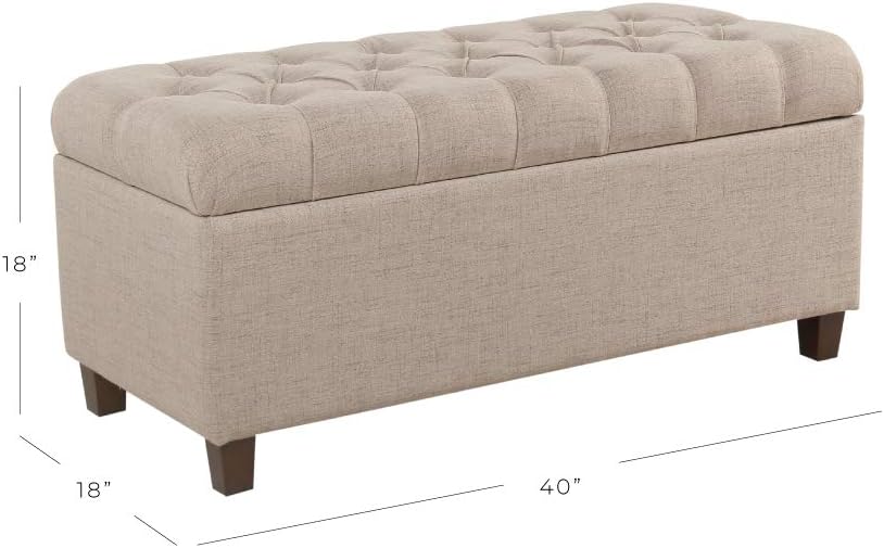 Homepop Home Decor | Tufted Ainsley Button Storage Ottoman Bench with Hinged Lid | Ottoman Bench with Storage for Living Room & Bedroom, Tan
