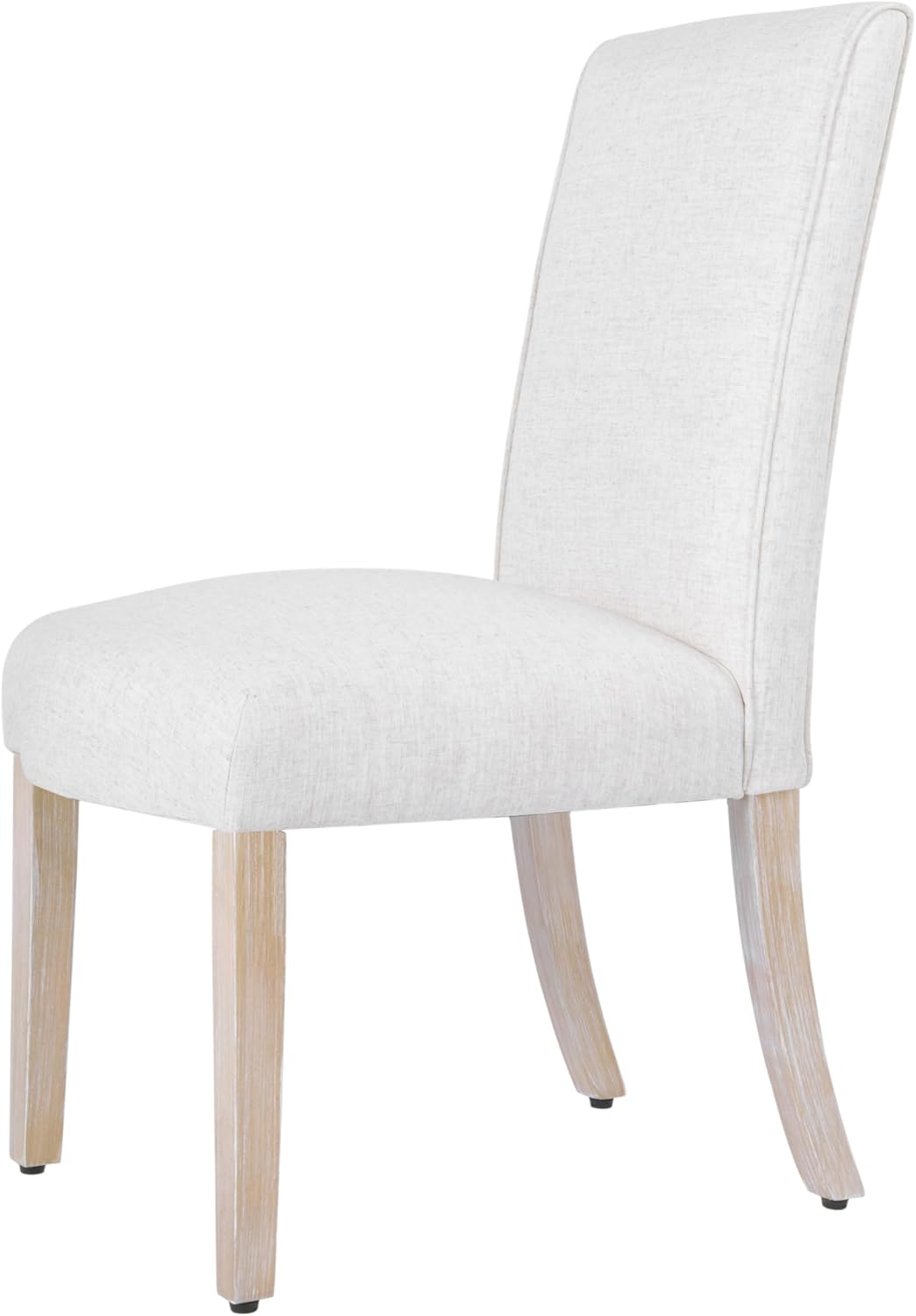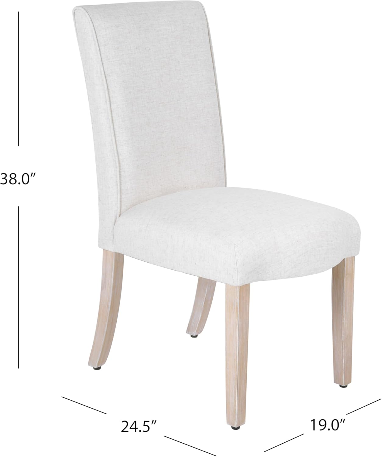 HomePop Scalloped Detail Dining Chair|Upholstered Parsons Dining Chairs |Decorative Home Furniture, Cream Textured Woven (Set of 2)