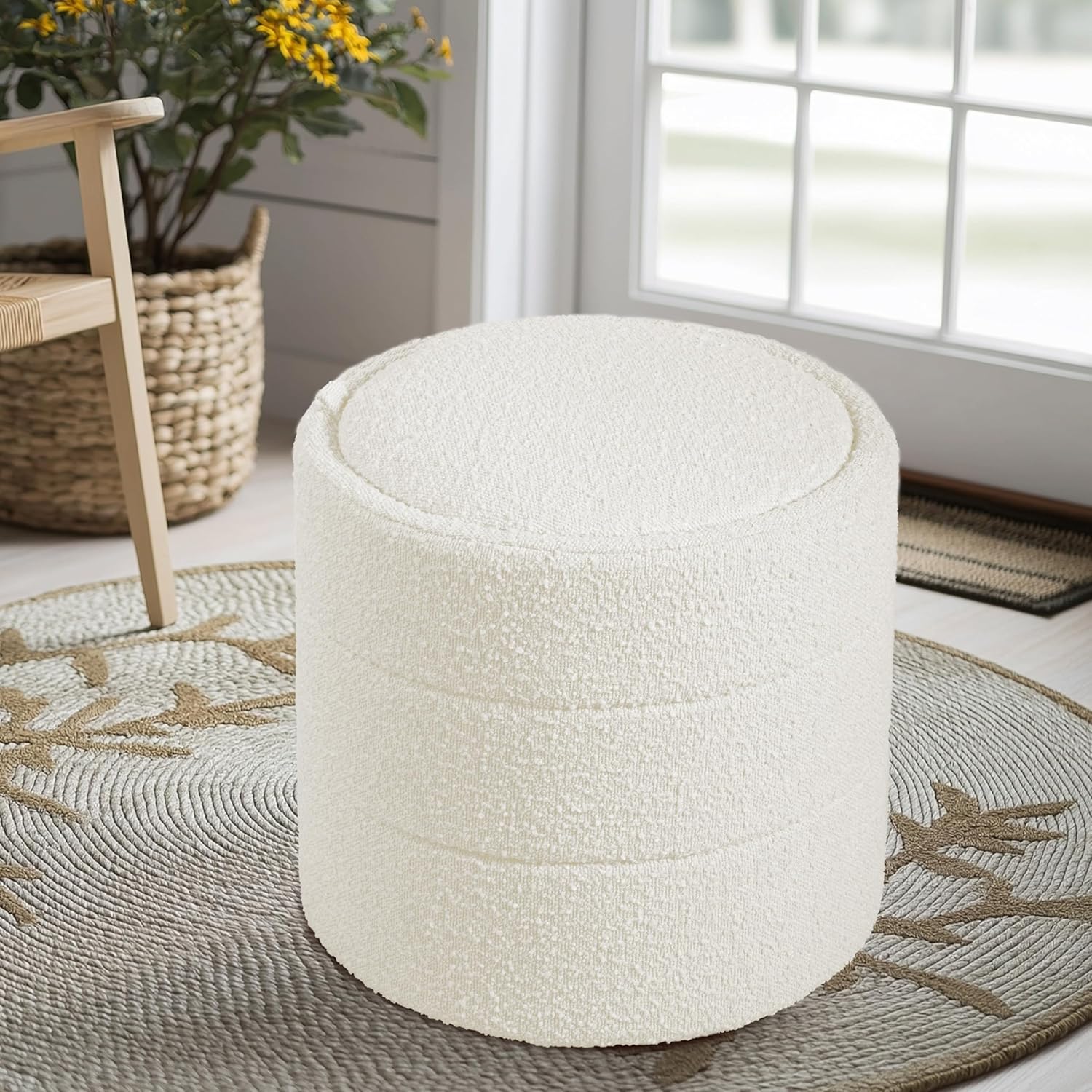 BOUCLE OTTOMAN CARE & CLEANING: The spot clean only care instructions make maintenance easy, while the cream upholstered boucle design adds a touch of charm and warmth to your living room, creating a cozy and inviting footstool for relaxation and lounging