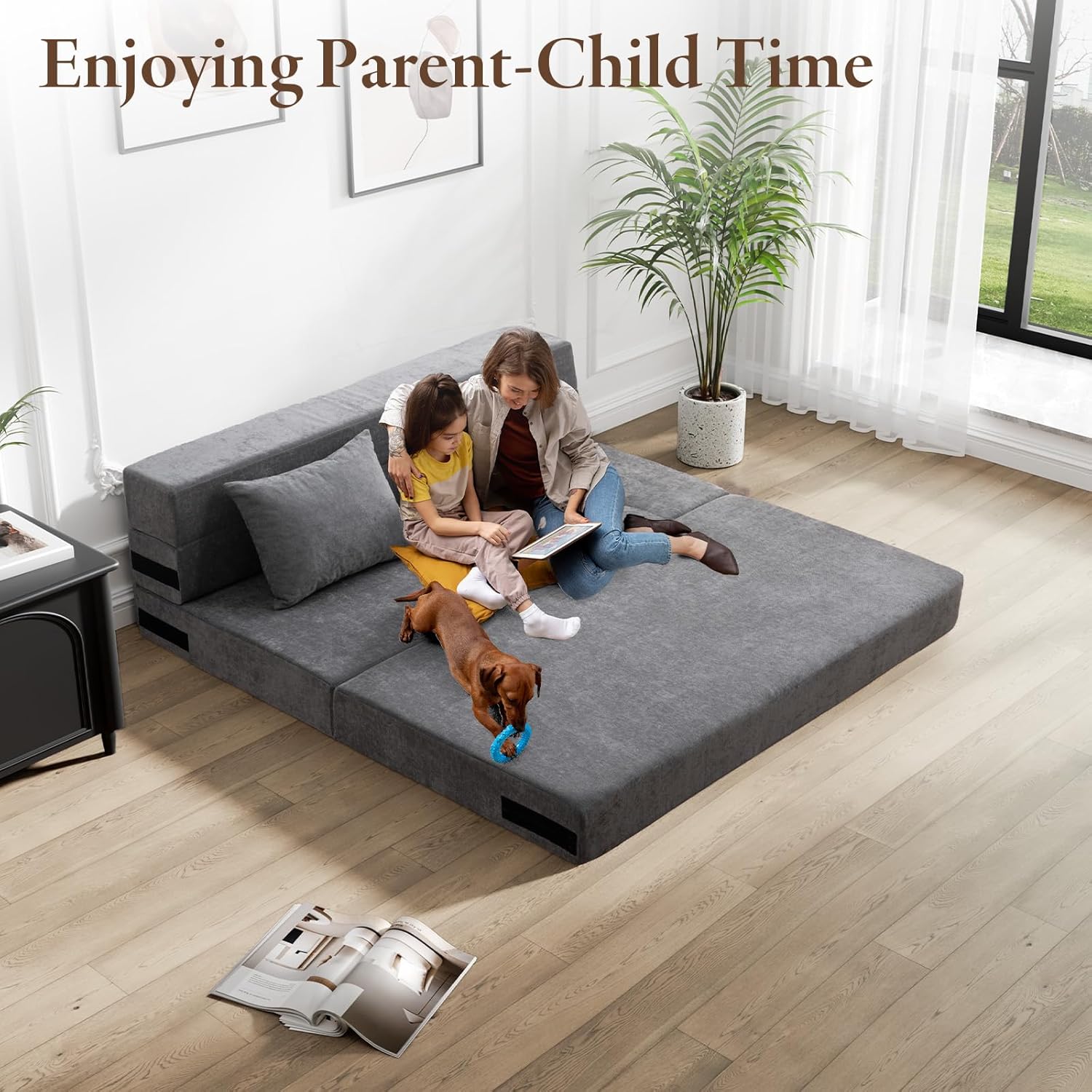 【Comfortable & Multi-Scene Use】The foldable sofa bed is lightweight and easy to move. It switches from a foldable couch bed to a futon mattress for sleepover guests. Perfect for living rooms, guest rooms, apartments, dorms, RVs, camping tents, vans, or even yoga and workouts