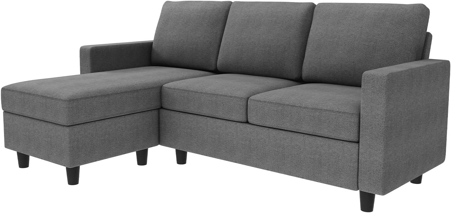 HONBAY Convertible Sectional Sofa, Convertible L Shaped Couch with Reversible Chaise, Sectional Couch for Small Space Apartment, Grey