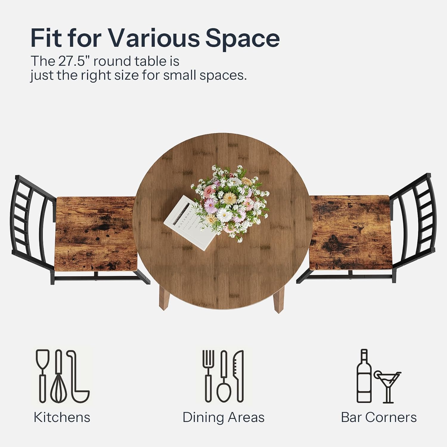 Ideal Choice for Smaller Spaces: This compact dining table (27.5″L x 27.5″W x 29.5″H) is perfect for kitchen breakfast nooks, apartments, and other limited spaces. The kitchen dining table comfortably seats 2-4 people, making it practical for intimate gatherings