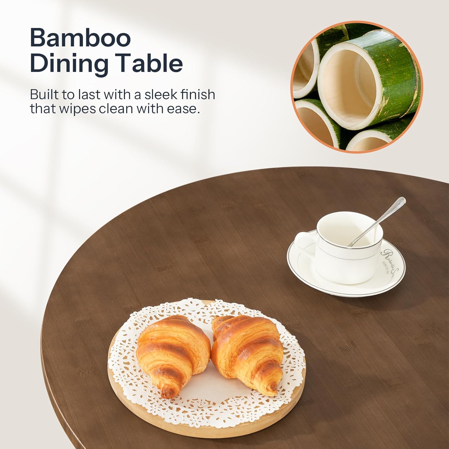 Sturdy and Stable: With a reinforced underside, the bamboo dining table stands firm for a serene mealtime ambiance. The PVC pads on the feet keep the dining tables from sliding around noisily and protect your floors from scratches when you need to move this small dining table