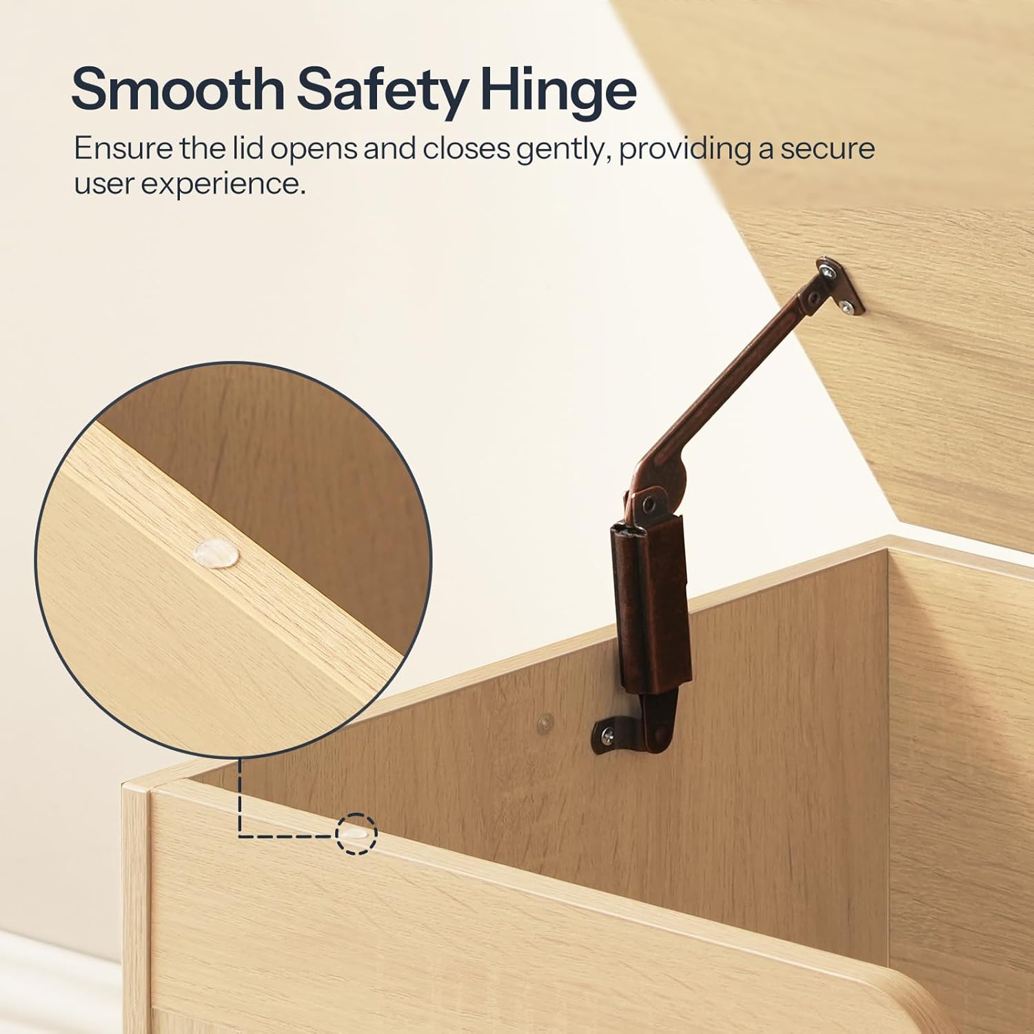 Safety and Reliability: The ingenious combination of the safety hinge at the top of the toy box with the U-shaped cutout ensures smooth opening and closing, preventing pinching and providing enhanced safety and dependability during use