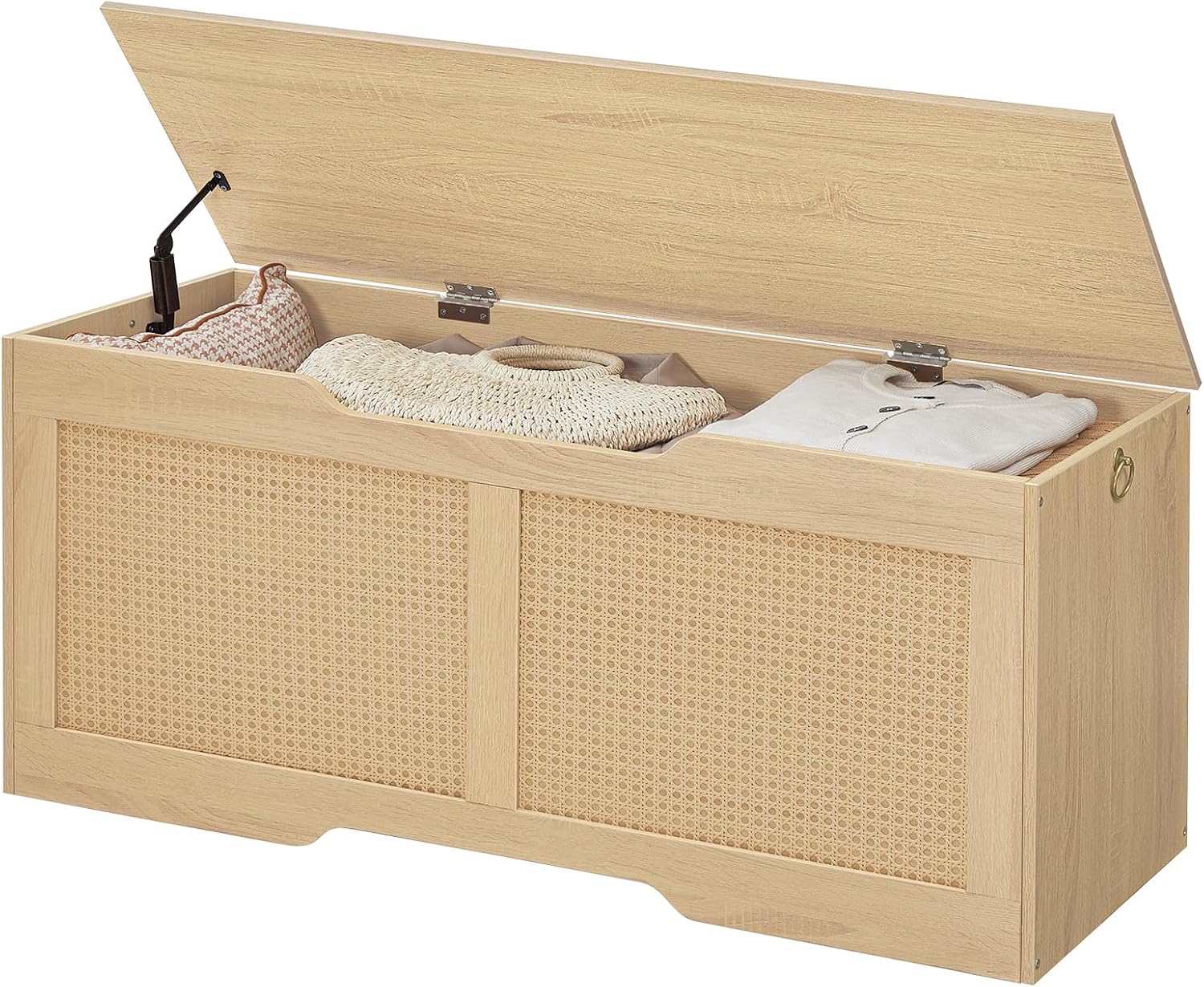 HOOBRO Storage Bench, 43.3″ Toy Box, Rattan-Like Storage Chest, Sturdy Entryway Bench Supports 220 lb, Toy Chest, Safety Hinge, U-Shaped Opening, Easy Assembly, Natural NL22CW01