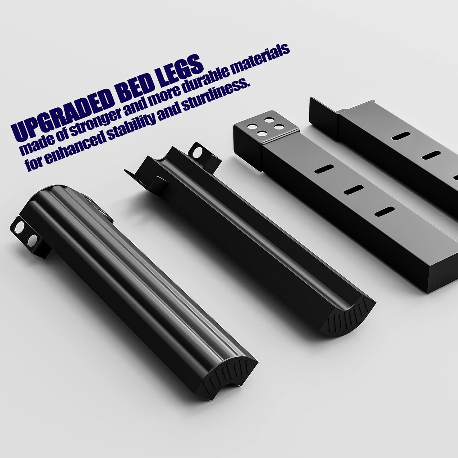 This Hunlostten heavy duty metal platform bed frame with round corners gives your bed a modern look with sufficient space for under bed storage. Constructed with sturdy steel slats and reinforce center leg can support any type of mattress. Round edge legs prevents you and your family members from bumping into the edges. This heavy duty steel slat foundation effortlessly extend your mattress’s lifespan and prevent sagging. Modern matte finish always matches perfect with any bed room design and home decor. Easy assembly and smartly shipped in a box.
