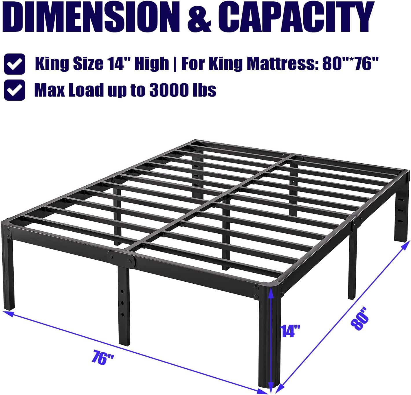 Hunlostten 14in High King Bed Frame No Box Spring Needed, Heavy Duty King Platform Bed Frame with Round Corners, Easy Assembly, Noise Free, Black