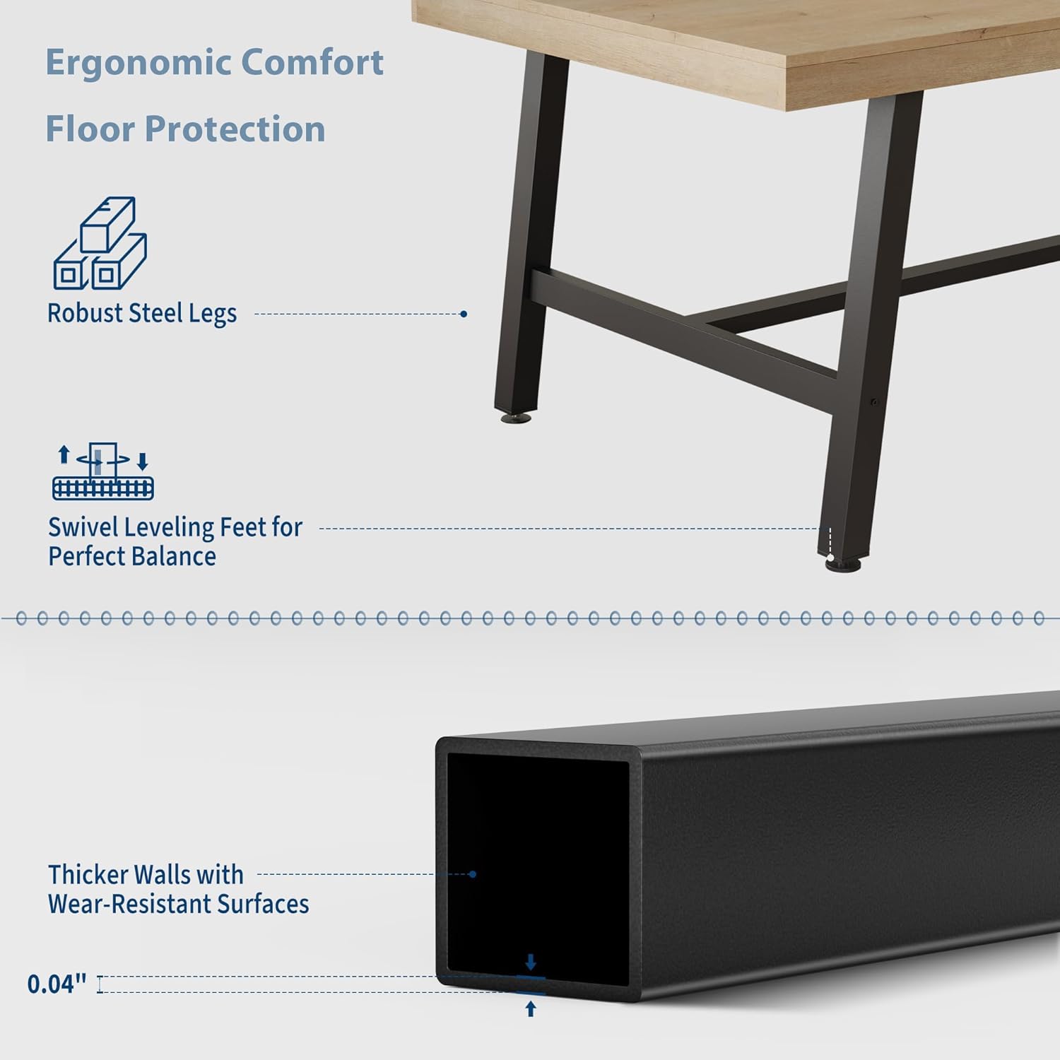 [Ergonomic Height & Adjustable Foot Pads]: Designed for comfort, the 30” height allows plenty of legroom for all guests. Each leg includes adjustable non-slip pads that adapt to uneven floors and protect your floor from scratches—ensuring stable dining and a comfortable seating experience for everyday meals or celebrations.