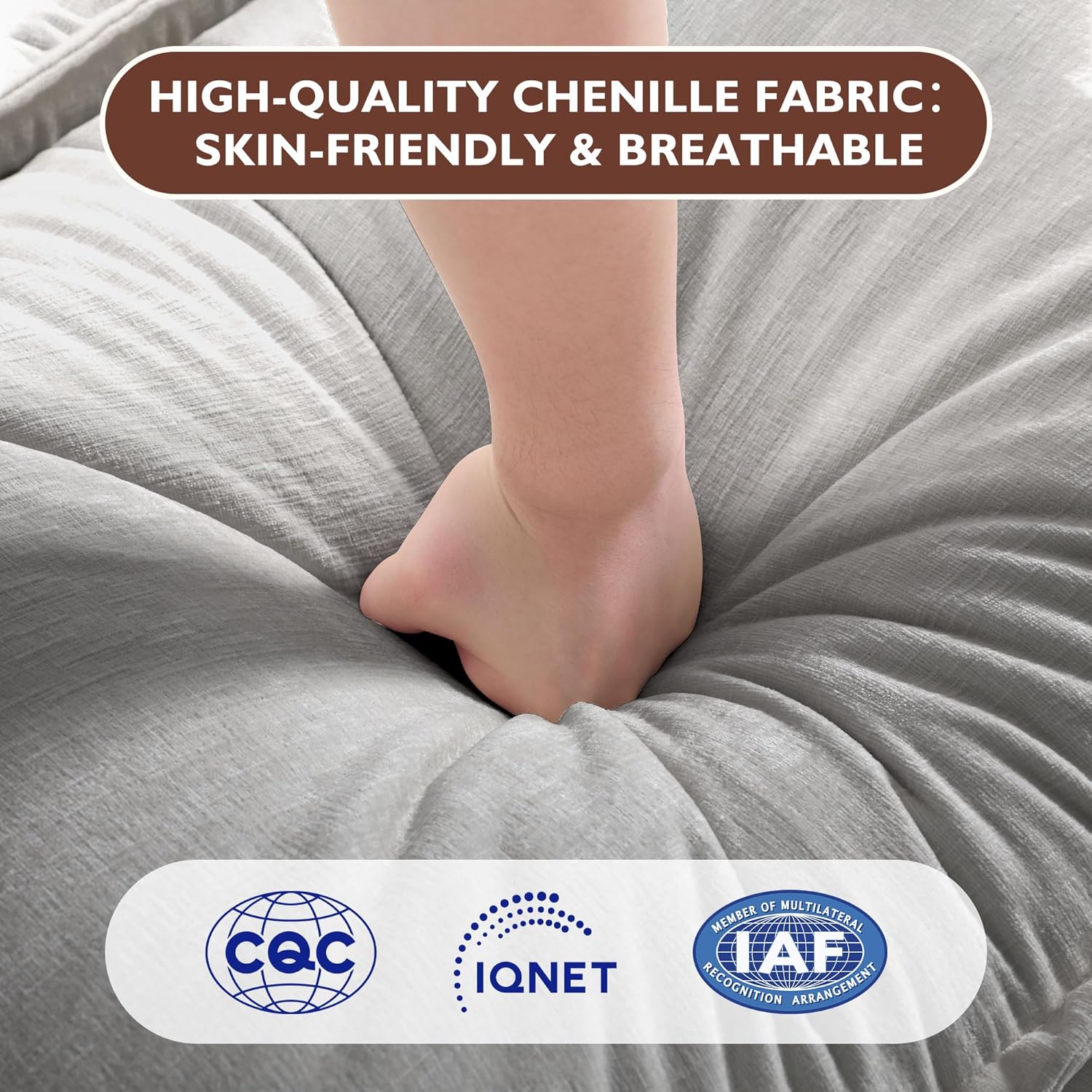 Premium and Durability: The cloud sofa is made of high-quality skin-friendly Chenille fabric and solid wood frames, the weight capacity for each seat is 440 lbs, standing the test of time, it’s a great choice for your furniture.