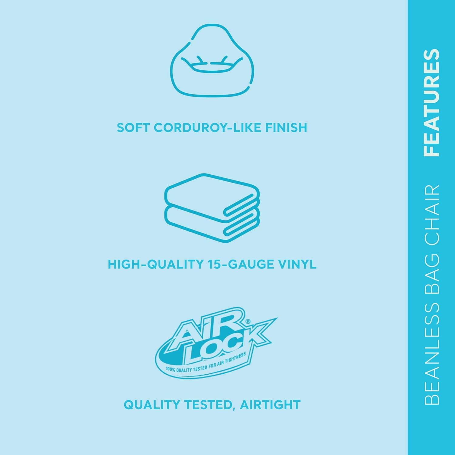 Customers find the bean bag chair beautiful and love its color, with one mentioning it’s a great addition to their room. The size receives mixed feedback – while some say it’s larger than expected, others find the seating area too small. Moreover, the air retention and leakage are significant issues, with customers reporting that it starts losing air if inflated too long and has frequent air leakage. Comfort and durability also receive mixed reviews, with some finding it comfortable and sturdy enough for active children, while others disagree. Additionally, the quality and value for money are debated, with some considering it a good investment while others find it poor quality and not worth the price.