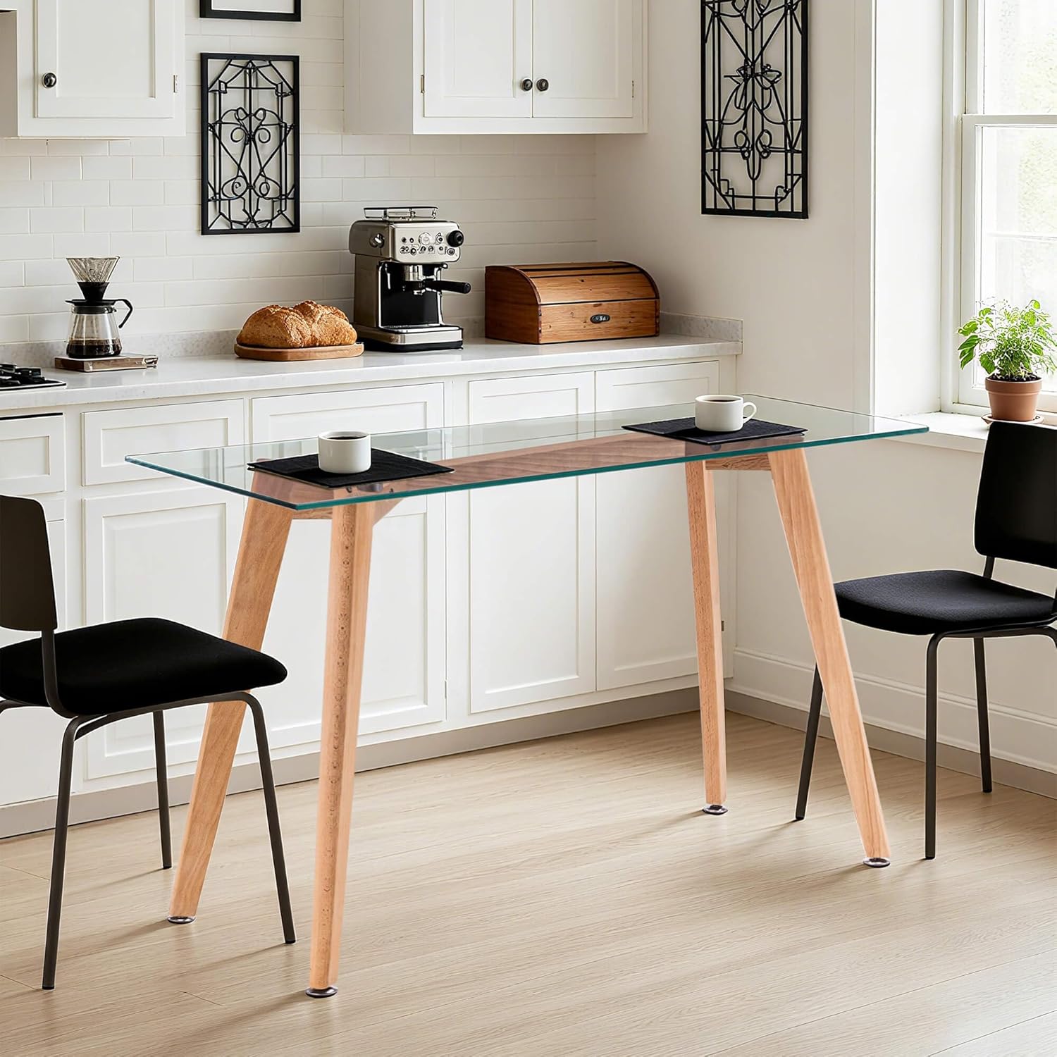 0.3-inch Thick Tempered Glass: The rectangular glass top is made of 0.3-inch thick tempered glass, offering durability. Its finely sanded edges provide a smooth, safe experience for everyday use