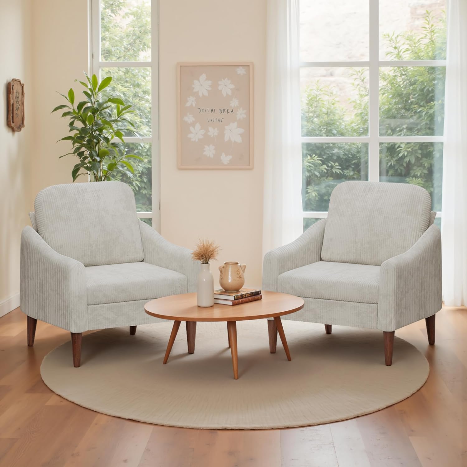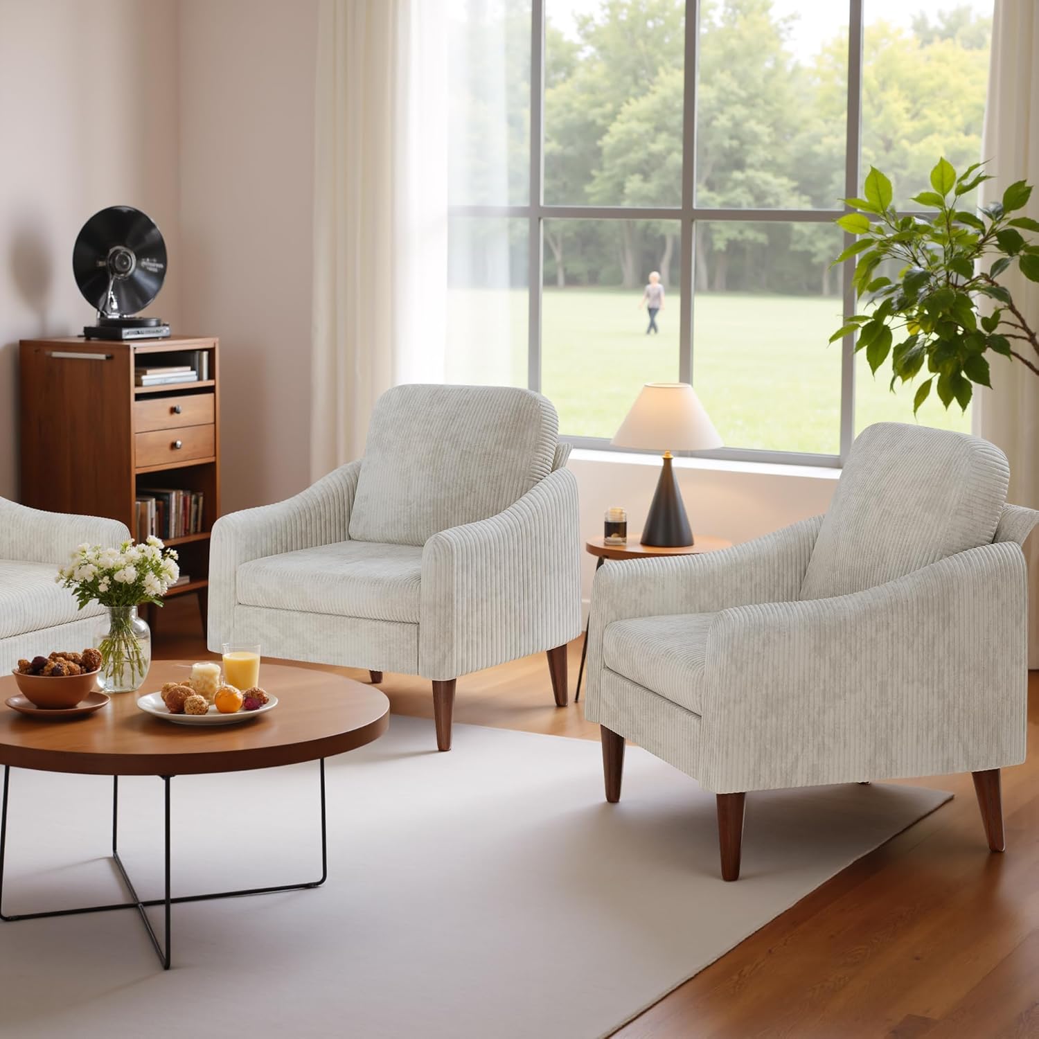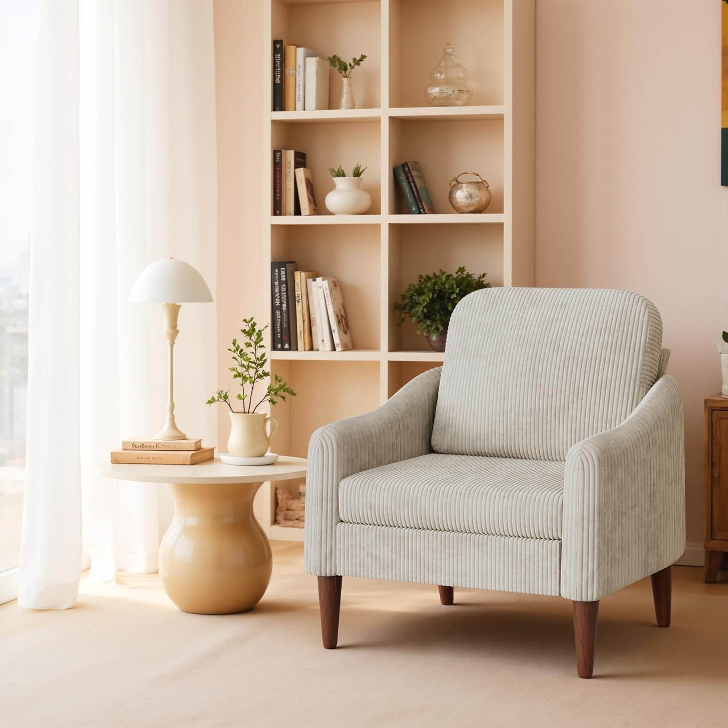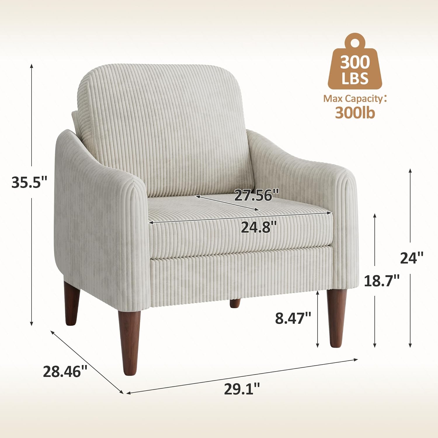 Plush corduroy upholstery and solid walnut wood legs illustrate the aesthetics of comfort in a small space. Thick padding fits the body, vertical ribbing resists abrasion and dirt, simple lines and neutral colors blend seamlessly into a variety of home styles, and a solid structure ensures long-lasting companionship.