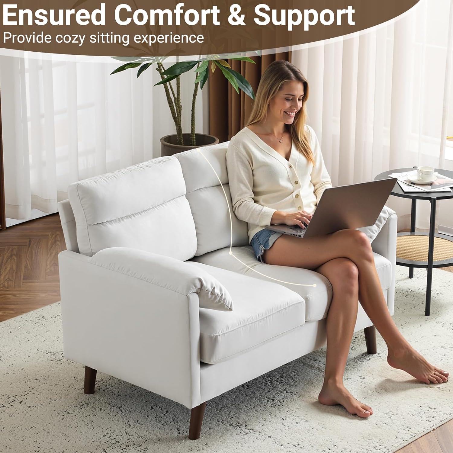 Premium Material for Long Term Use – This ergonomically designed sofa couch is crafted from premium materials. Combined with solid wood frame and wood legs, this small couch can hold up to 580 lbs. Enjoy your cozy time without concerns of sturdiness.