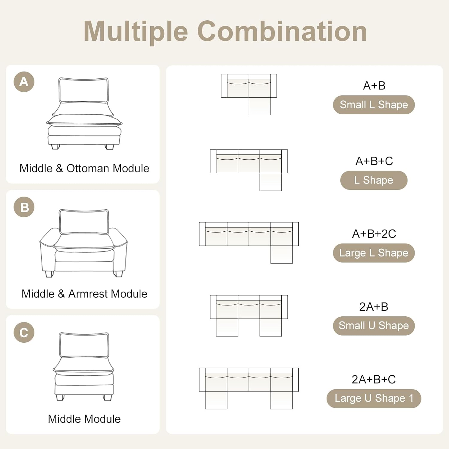 Flexible Modular Combination – It is easy to customize different sofa couches with each modular piece. You can build your own couch such as a 2-seat L-shape sofa, a 3-seat L/U-shape sofa, or a 4-seat L/U-shape sofa according to your imagination and needs.
