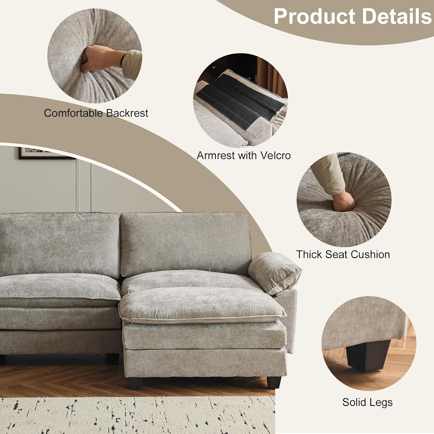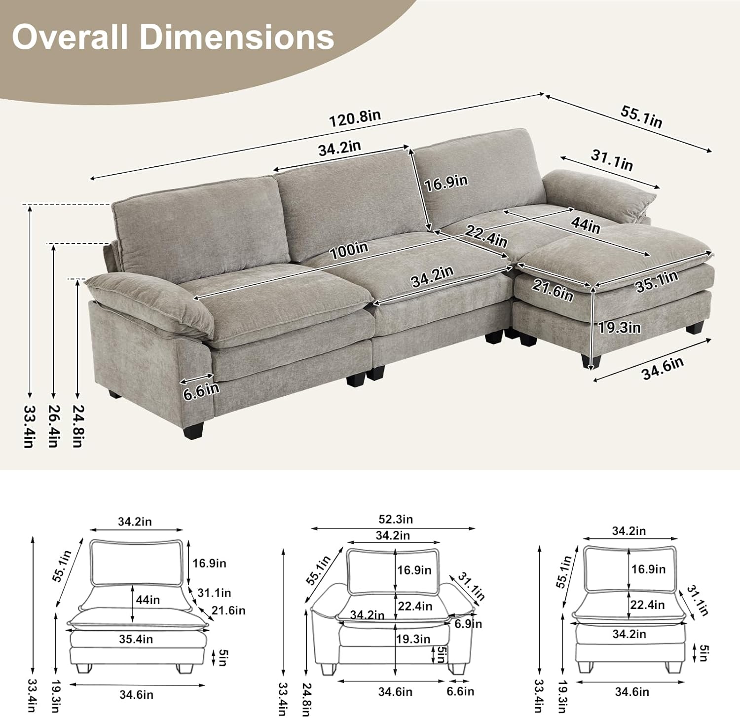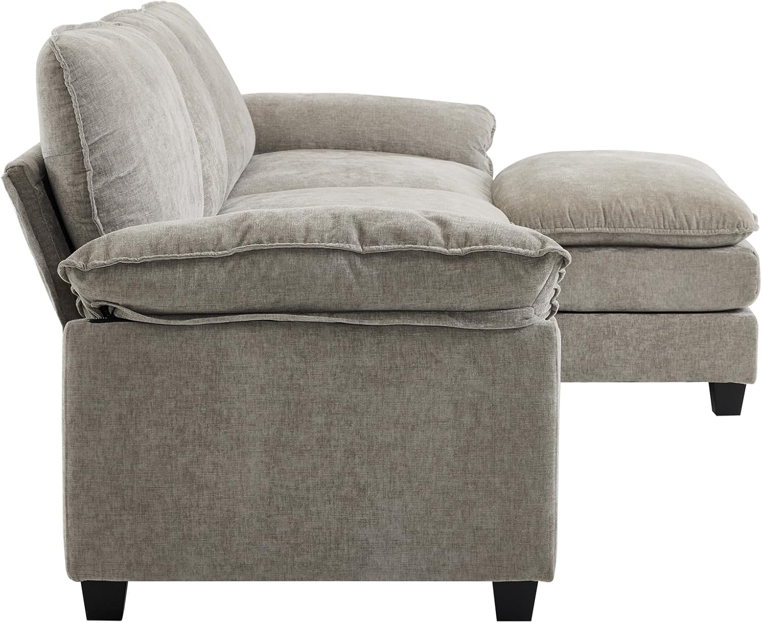 Karl home Sectional Sofa Modular Deep Seat Sofa Couch with Ottoman, Chenille Sofa Sleeper Comfy Upholstered Furniture for Living Room, Apartment, Studio, Office, (3-Seat & 1-Ottoman, Light Gray)