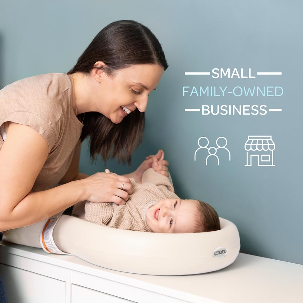Mom interacting with baby on Keekaroo Peanut Changer on top of a dresserMom interacting with baby on Keekaroo Peanut Changer on top of a dresser