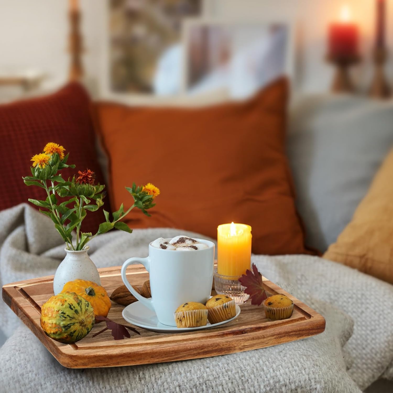 Easy to Maintain: after use, you only need to wash these wood trays by hand or wipe them with a wet cloth, please do not soak them in the water or put them in the dishwasher; Beyond their practical features, the warm wooden color and beautiful grain of the acacia wood can complement the kitchen and table decor and serve as a kitchen accessory