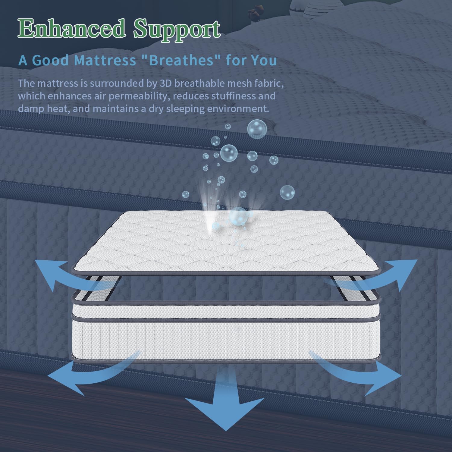 Stay Cool and Comfortable: The breathable, fiberglass-free design of our king size bed mattress ensures you stay cool throughout the night. Advanced cooling technology helps regulate temperature, preventing overheating. This feature is particularly beneficial for those who tend to sleep hot, providing a refreshing sleep experience.