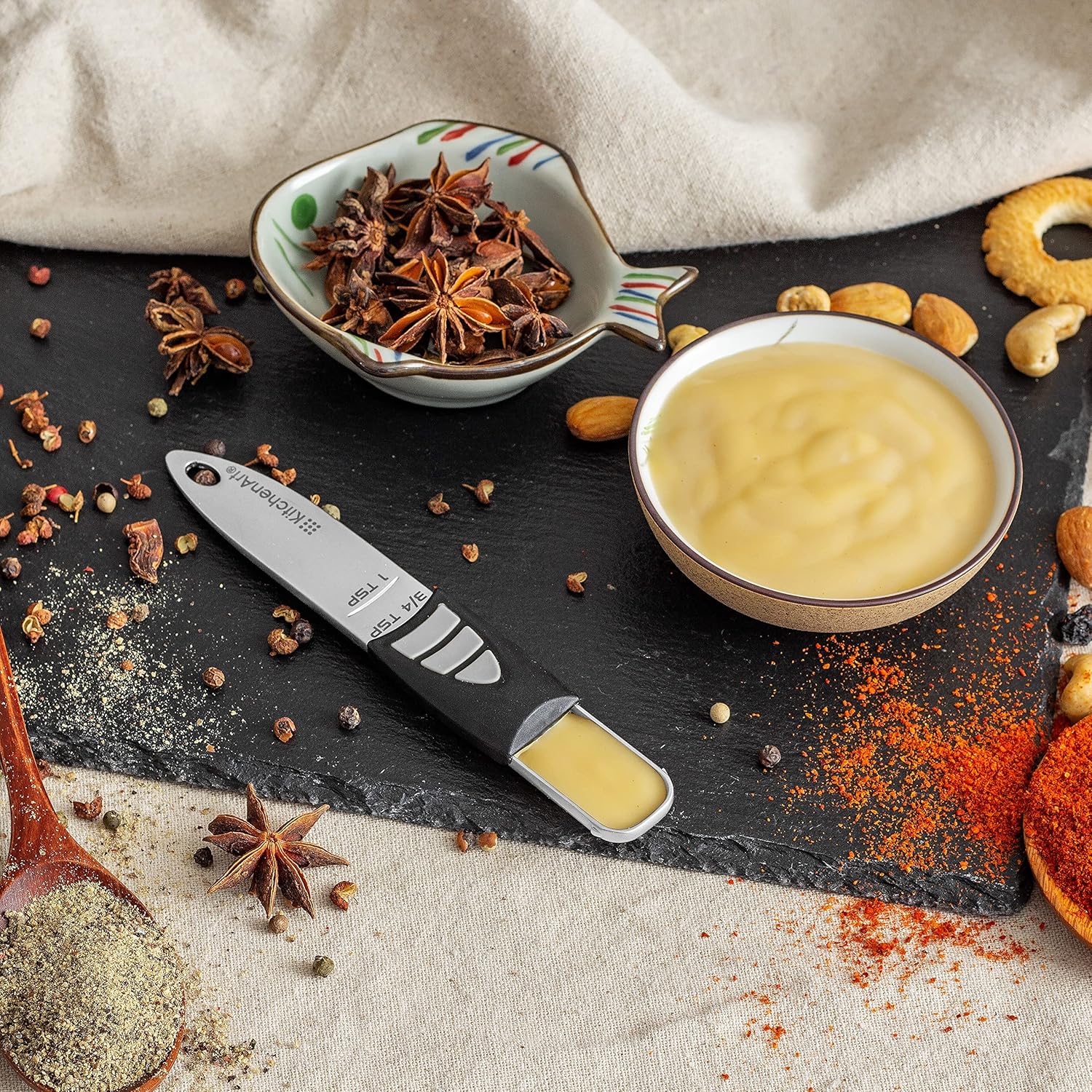 KitchenArt Stainless Steel Pro Sliding Adjust-A-Tablespoon and Teaspoon, Adjustable Measuring Spoon Set