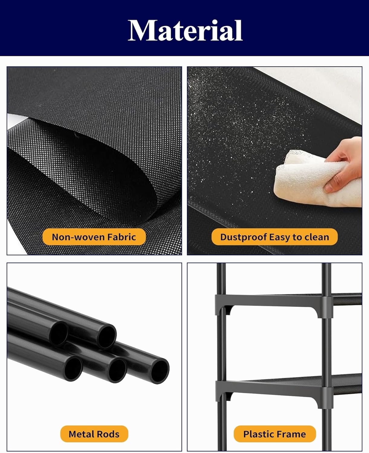 STABLE STRUCTURE: This shoe organizer Made from metal tubes with plastic frame. The non-woven fabric shelves protect footwear from dents and scuffs while preventing dust from falling through layers, keeping your collection clean and well-maintained.