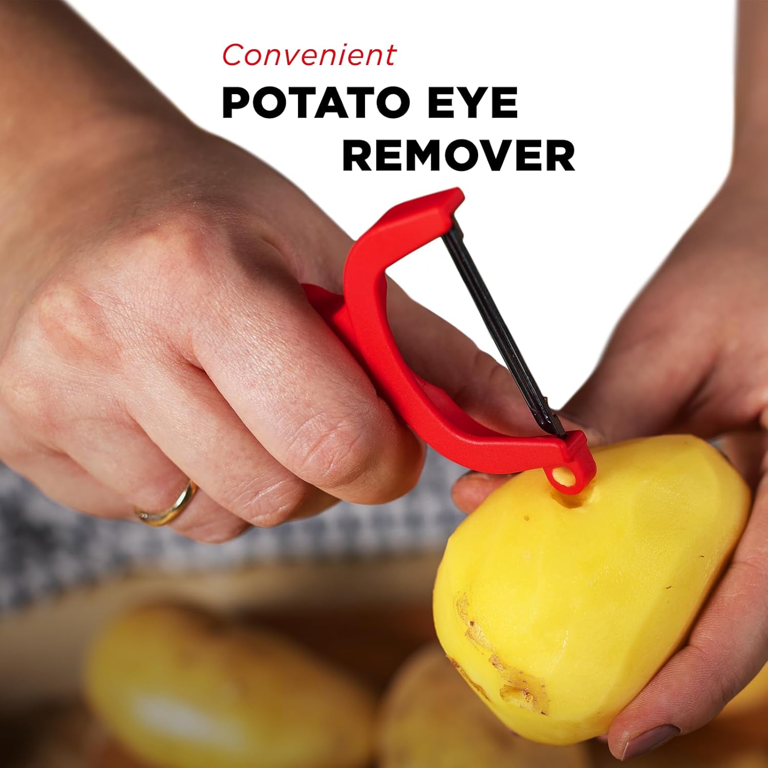 Incorporates a convenient potato eye remover and is suitable for right and left-handed use