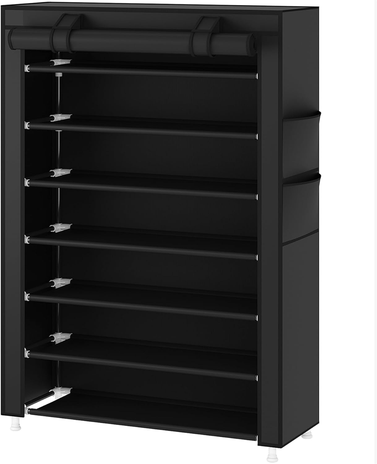 Laiensia 7-Tier Vertical Shoe Rack Organizer, Space Saving Shoe Storage Organizer, Non-Woven Cover Shoe Shelf , Black