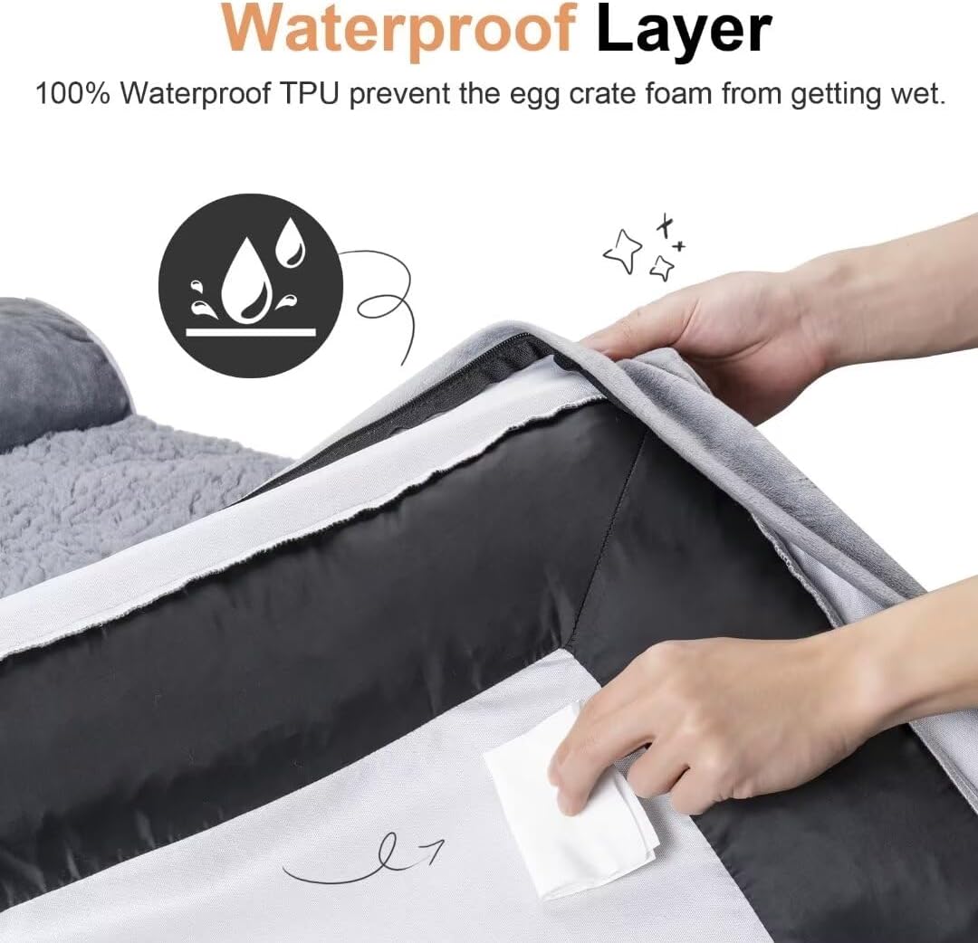 Soft Velvet and Waterproof Surface: The PV velvet brush flower composite surface and crystal super soft bolster of the dog bed offer maximum comfort for your furry friends; your pups can enjoy a peaceful and restful sleep; and there is a waterproof layer attached on the cover to protect the egg crate foam from getting wet