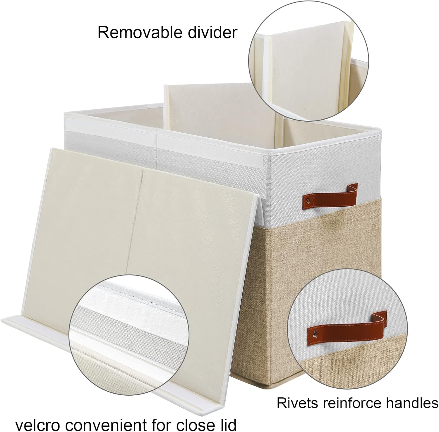 Large Toy Storage Box with Lid, Sturdy Toys Storage Chest Bin Organizer Basket with Dividers for Kids, Boys, Girls, Nursery, Closet, Bedroom, Playroom 25″x13″ x16″ (Beige and White)