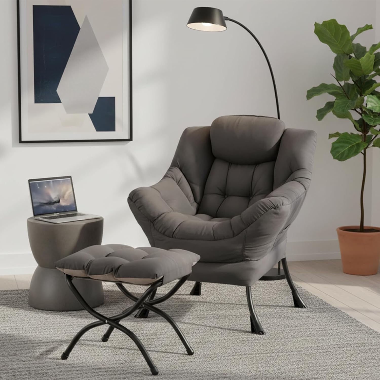 LAZY CHAIR WITH OTTOMAN: The comfy lazy chair comes with a versatile folding footstool. You can also put the footstool next to the sofa and coffee table in the living room as a footstool to relax your feet, or even put it in the hallway or doorway and sit on a small stool to change your shoes.