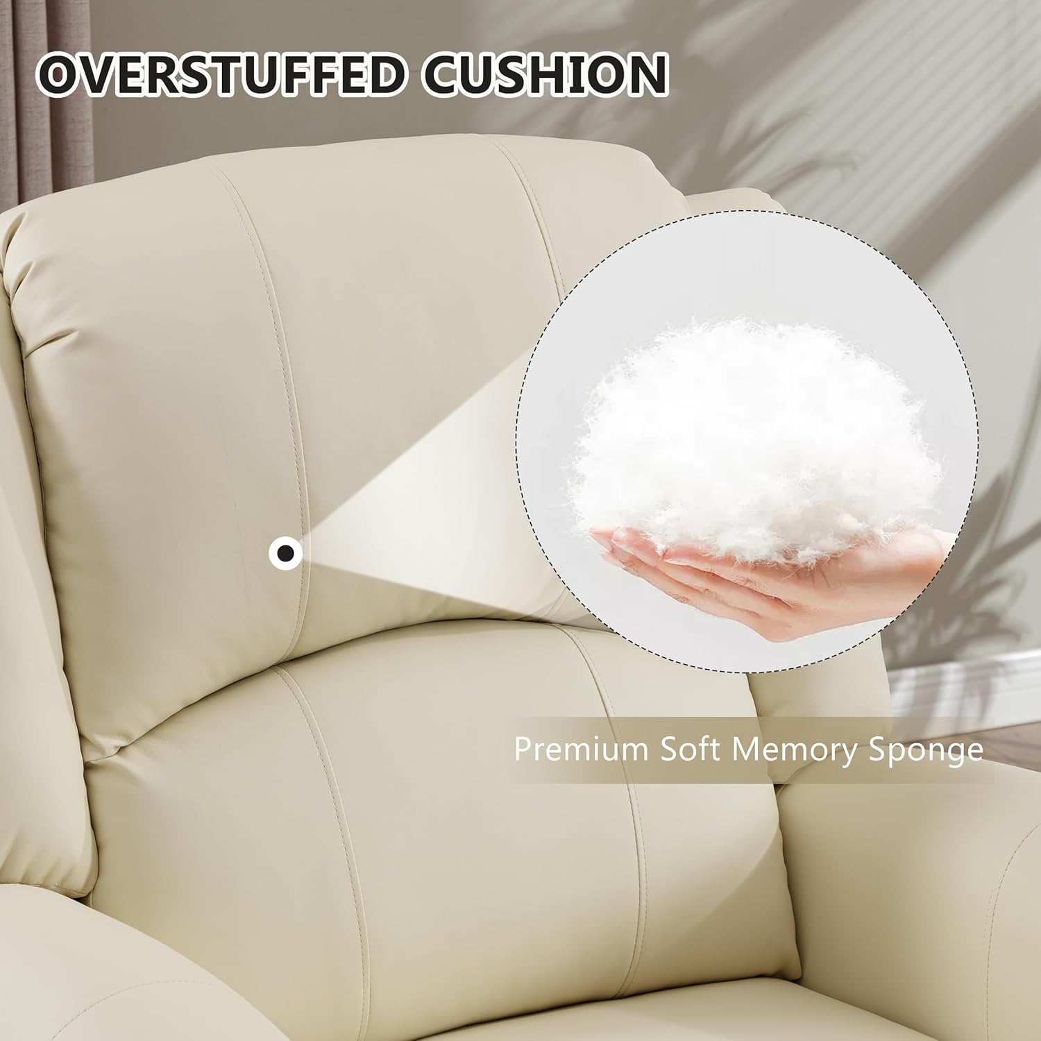 【Humanization Design 】The swivel glider recliner is overstuffed back and seat cushions filled with high-density foam for exceptional comfort; The reclining chair supports up to 350 lbs and features a smooth manual recline mechanism for a relaxing experience whether reading, watching TV, or napping.