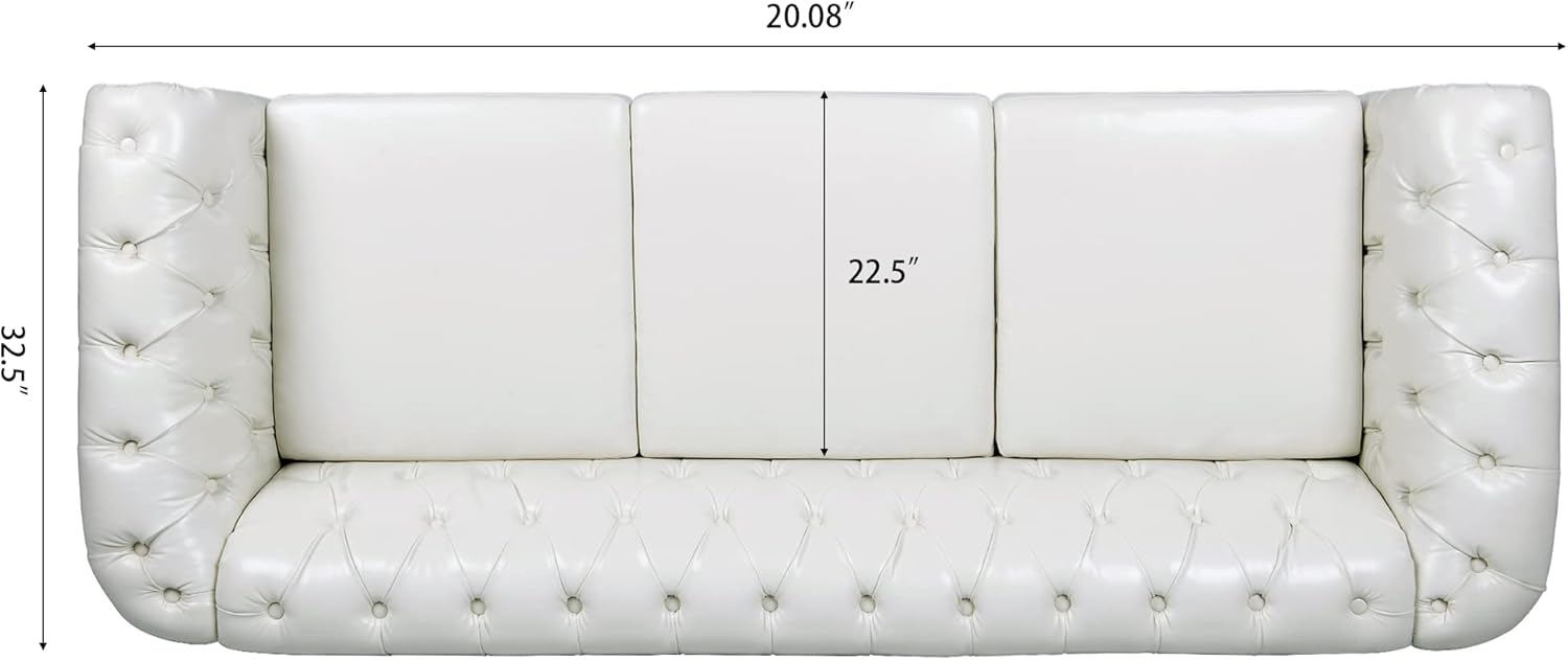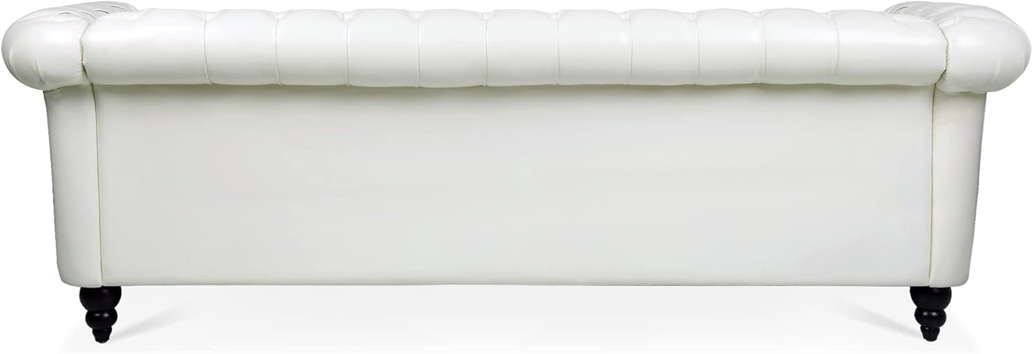 LEVNARY Chesterfield Sofa, Classic Tufted Upholstered Leather Couch, Modern 3 Seater Couch Furniture with Tufted Back for Living Room Office (Cream White)