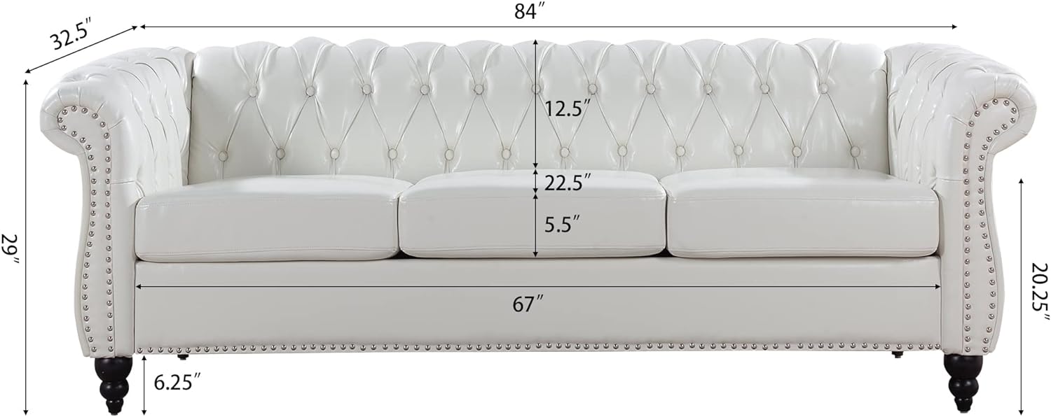 【Comfortable PU Leather】Upholstered with exquisite PU Leather material, this chesterfield sofa offers an enjoyable and comfortable feel, and won’t wrinkle so easily that you can sit and lie on the sofa freely.