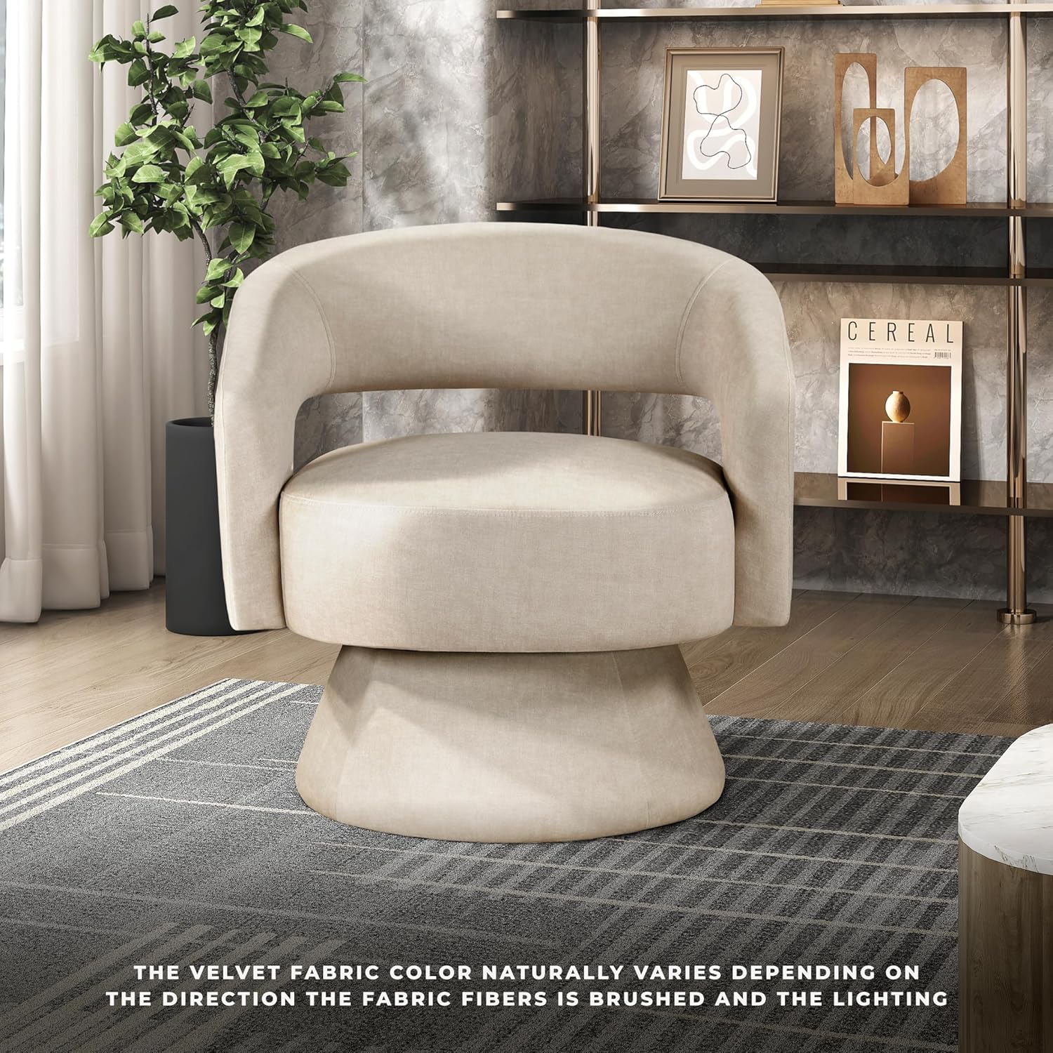 Lexicon 360 Degree Swivel Accent Chair, Modern Comfy Velvet Round Barrel Chair, Open Back, Plush Foam Cushions, Metal Swivel Base for Living Room/Bedroom/Office, Taupe