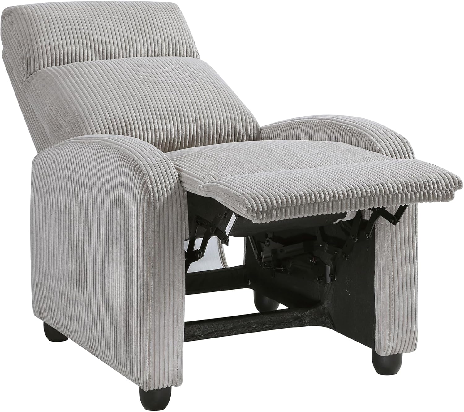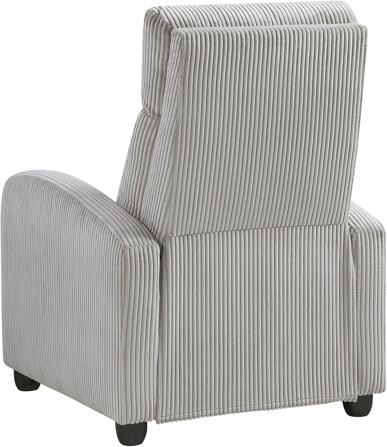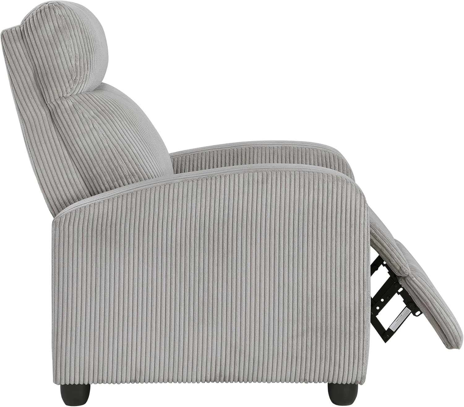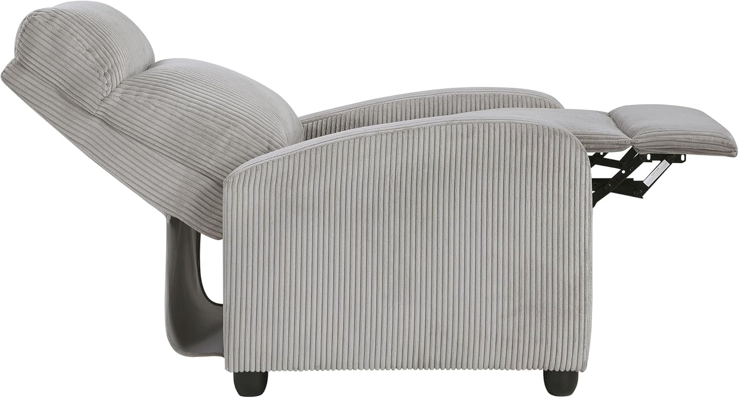 Lexicon Corduroy Pushback Recliner Chair Armchair Push Back Recliner, Solid Wood Frame and Metal Base, Easy Assembly Small Soft Single Sofa Accent Chair for Living Room/Office/Apartment, Light Grey