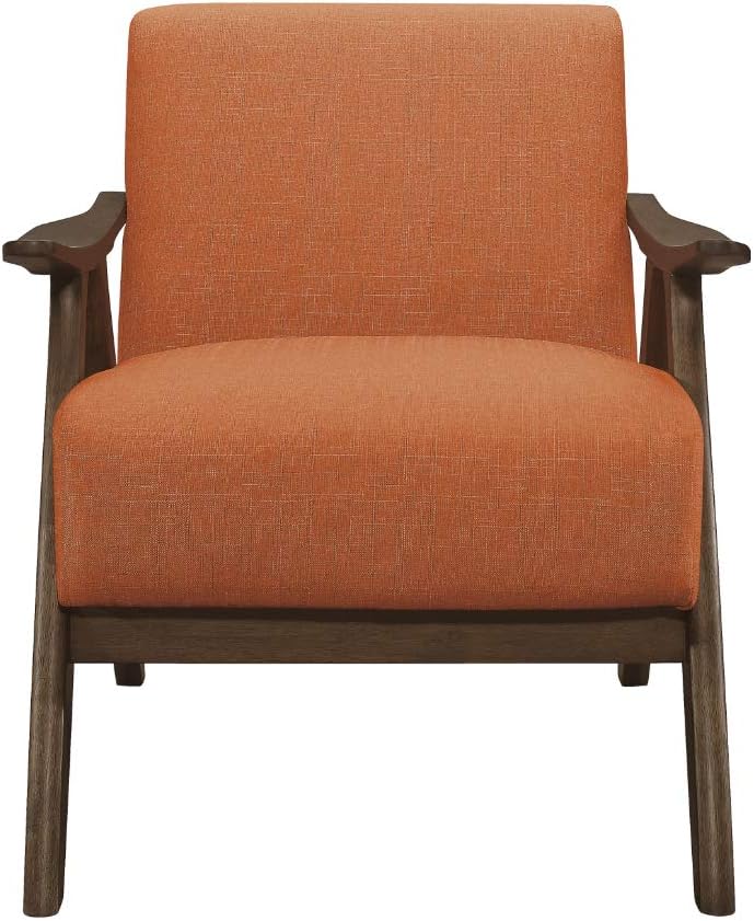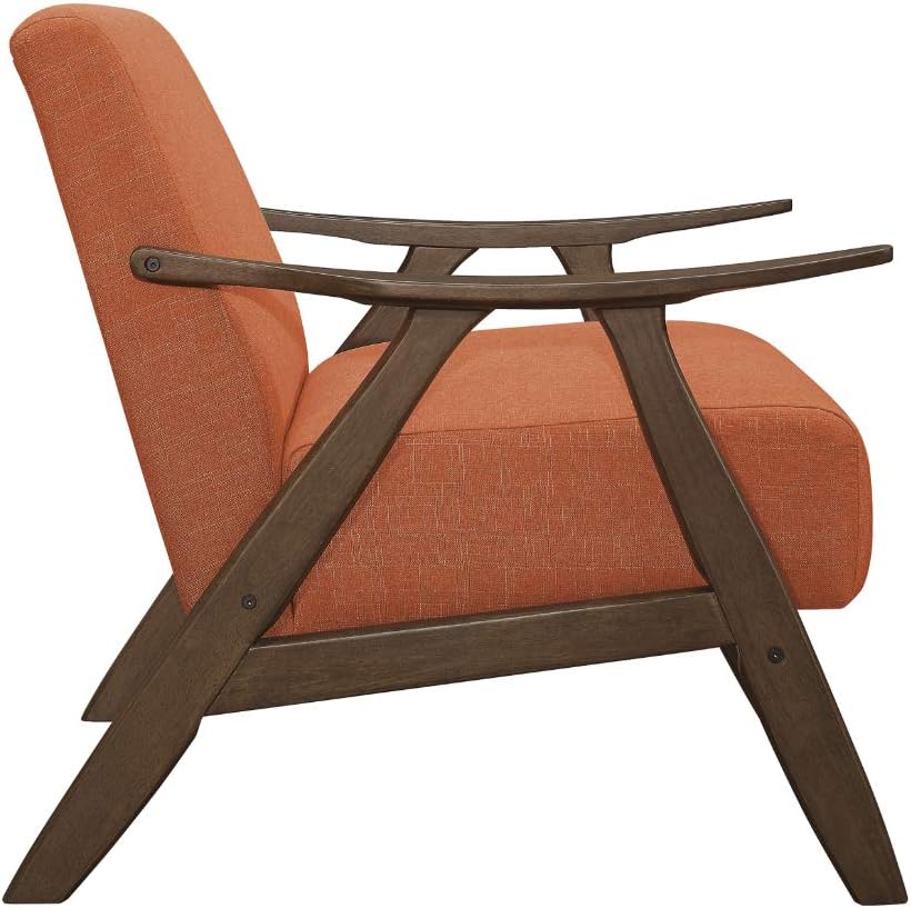 Lexicon Mid Century Modern Accent Chair with Solid Wood Frame in Walnut Finish, Upholstered Living Room Lounge Arm Chair, Thick and Comfy Innerspring Seat Cushion, Linen-Look Fabric, Orange