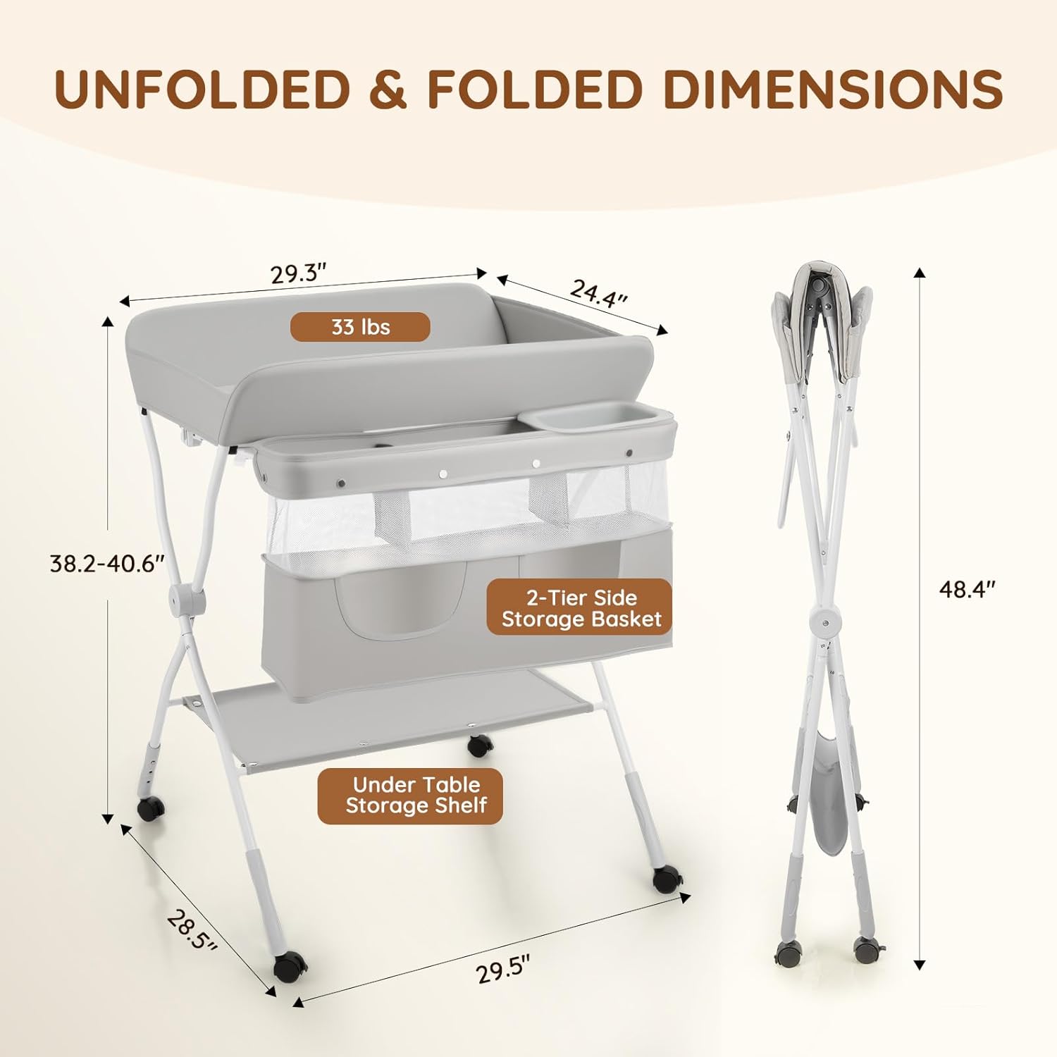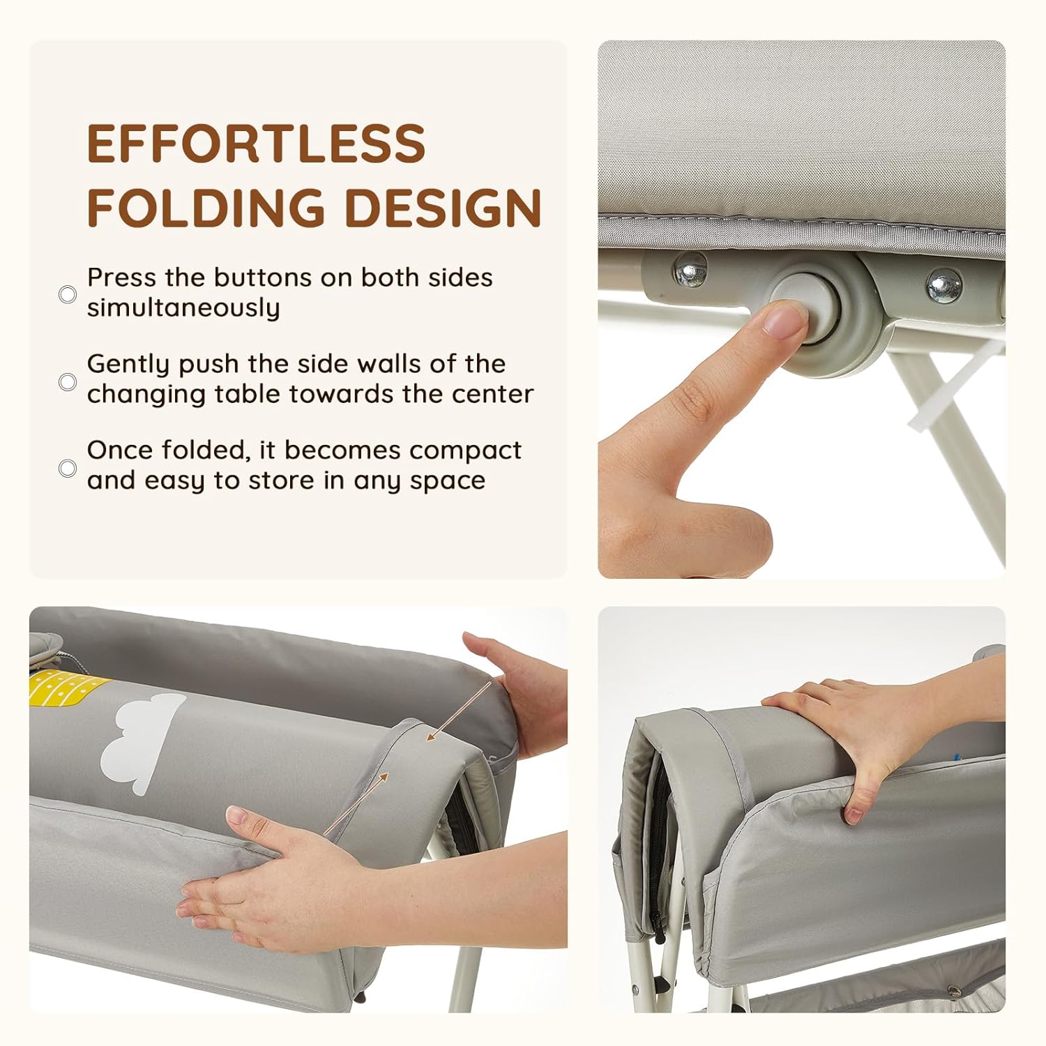 Foldable Design: No need for any other complicated operation, just press the button on the side of the changing table and it will be easily folded up, saving both time and space!