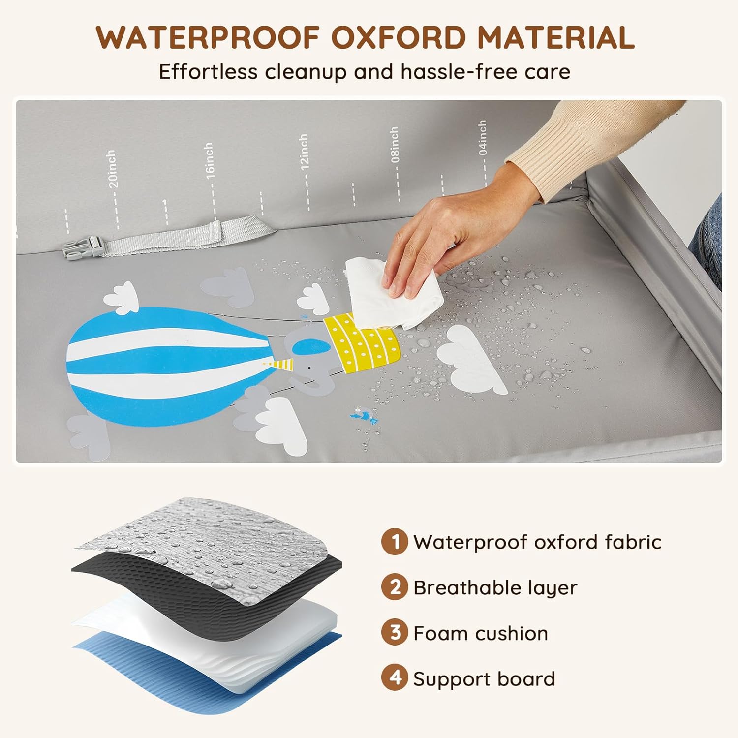 Easy to Clean: Made from waterproof Oxford fabric, this foldable diaper changing table allows for hassle-free cleanup after messy diaper changes