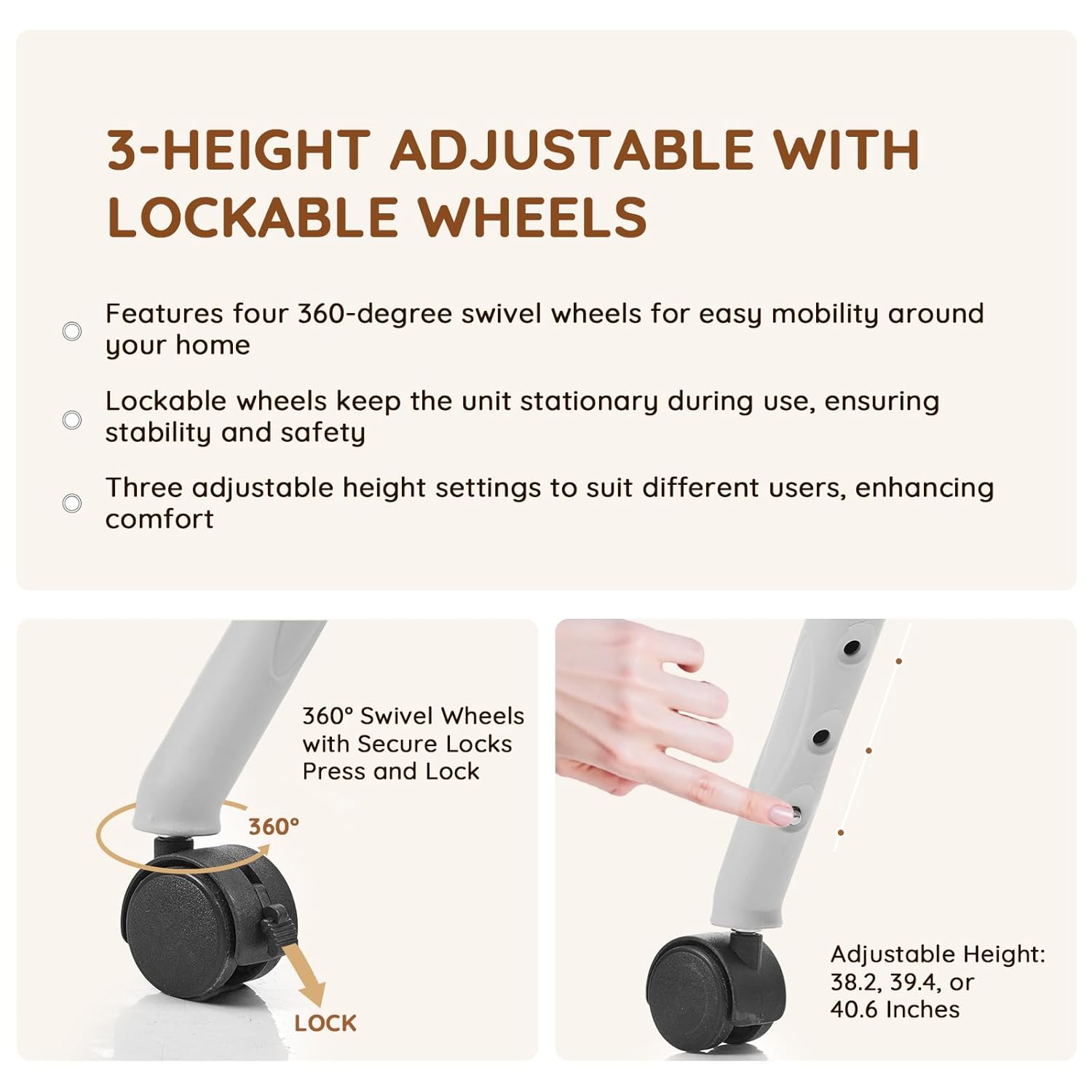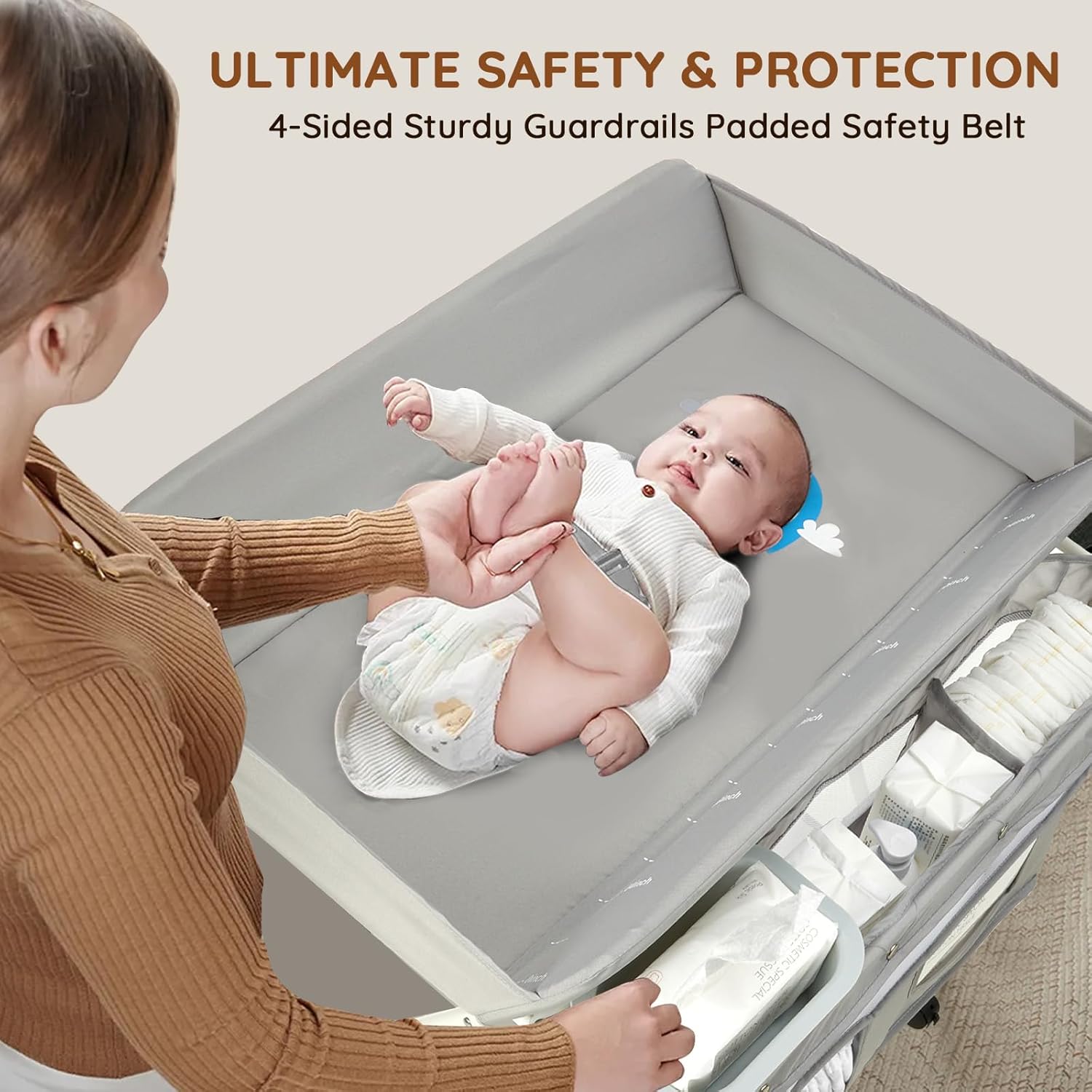 Effortless Mobility: Our baby diaper station is equipped with 4 lockable and silent universal wheels, which can be moved very easily and quietly on rough floors and plush carpets