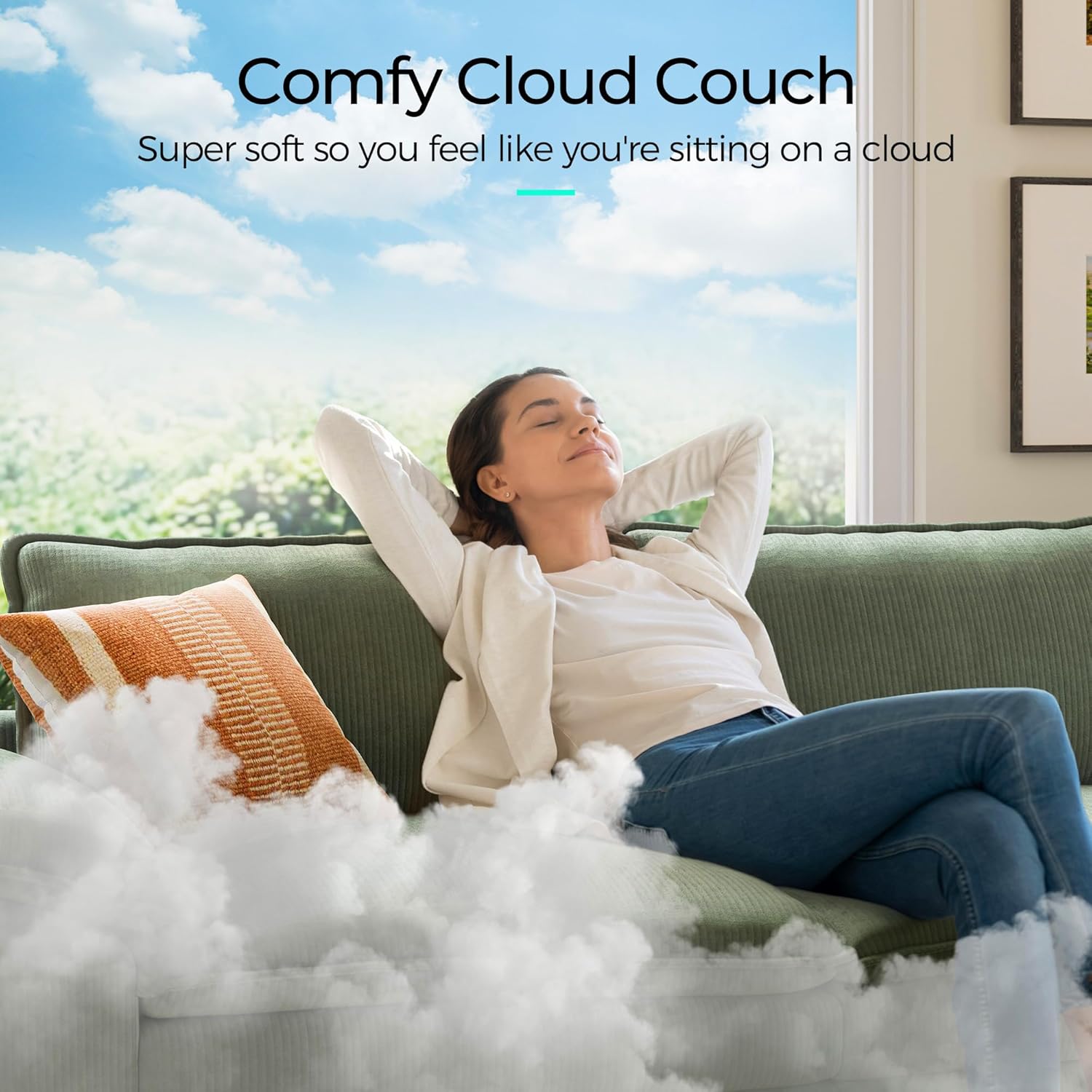 Comfy & Soft Cloud Couch: Experience cloud-like comfort with our double-layer seat cushion. The combination of high-density cotton, sponge, and pocket springs provides superior softness and support, making every seat very soft. This sofa is designed to offer ultimate relaxation, whether you’re lounging alone or hosting guests