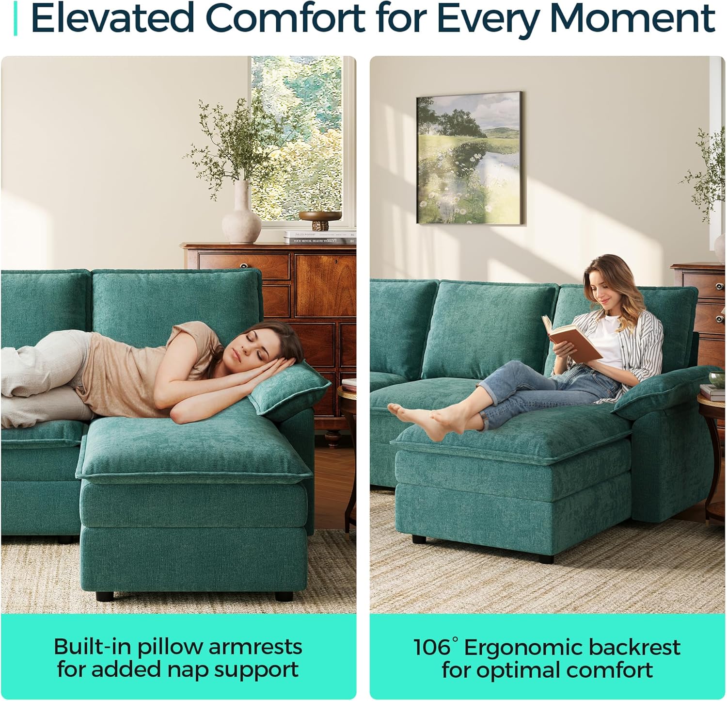 Built for Comfort & Durability: Crafted with eco-conscious, premium materials for lasting comfort and durability, this sectional sofa features a robust solid wood frame enveloped in soft, breathable polyester chenille, ensuring it feels luxurious while standing up to years of use.