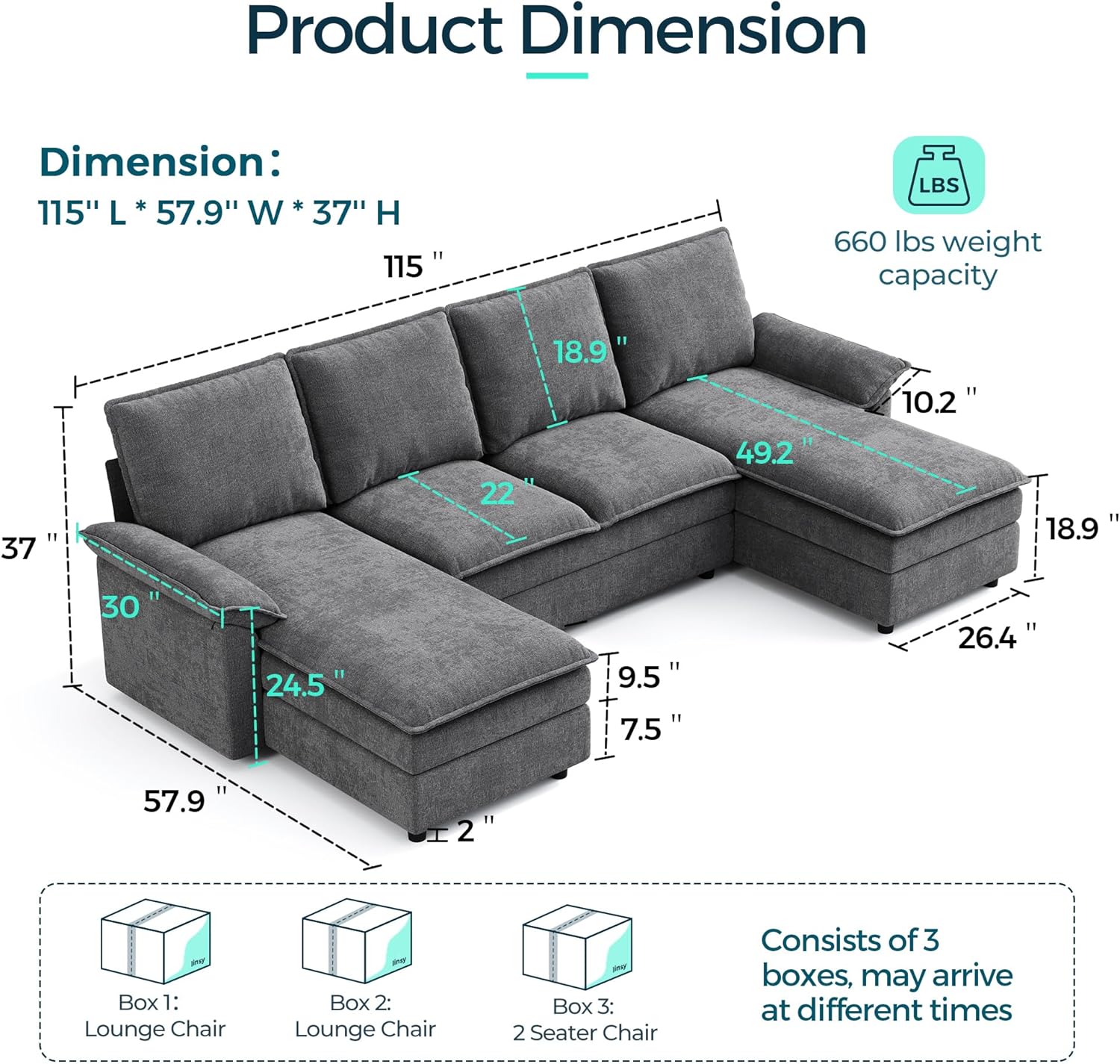 Easy Assembly & Hassle-Free Transport: Shipped in 3 manageable boxes 【May Arrive At Different Date】, this sofa couch is easy to move and can be assembled by one person in just 30 minutes. No stress, just comfort waiting for you to enjoy. If you have any questions, please contact us in time. 【Note: There may be slight color differences due to light or display】