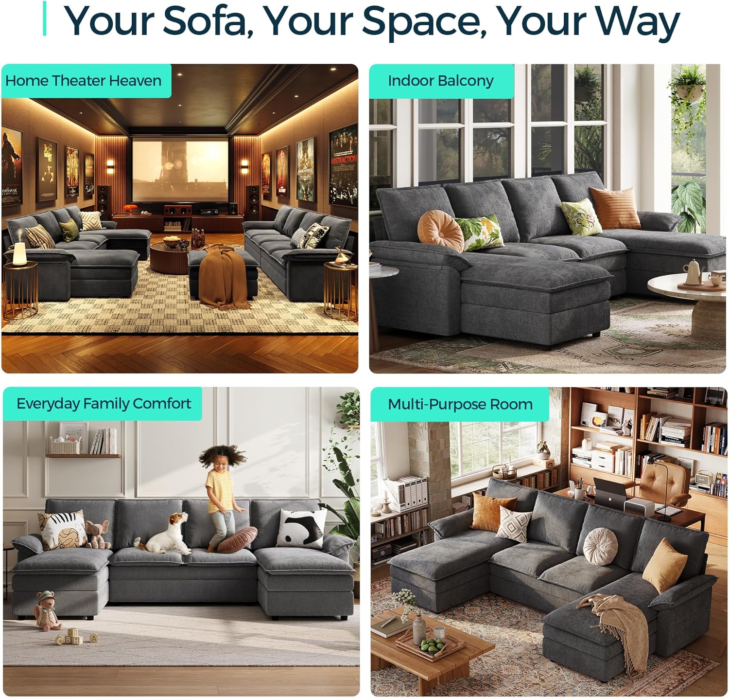 Modular Versatility for Flexible Arrangements: Reimagine your living area with LISNY HOME’s modular sectional. Whether you need a U-shape, L-shape for social gatherings or an sofa bed for home theater, the reversible chaise and convertible ottoman adapt seamlessly to your lifestyle needs, offering ultimate customization.