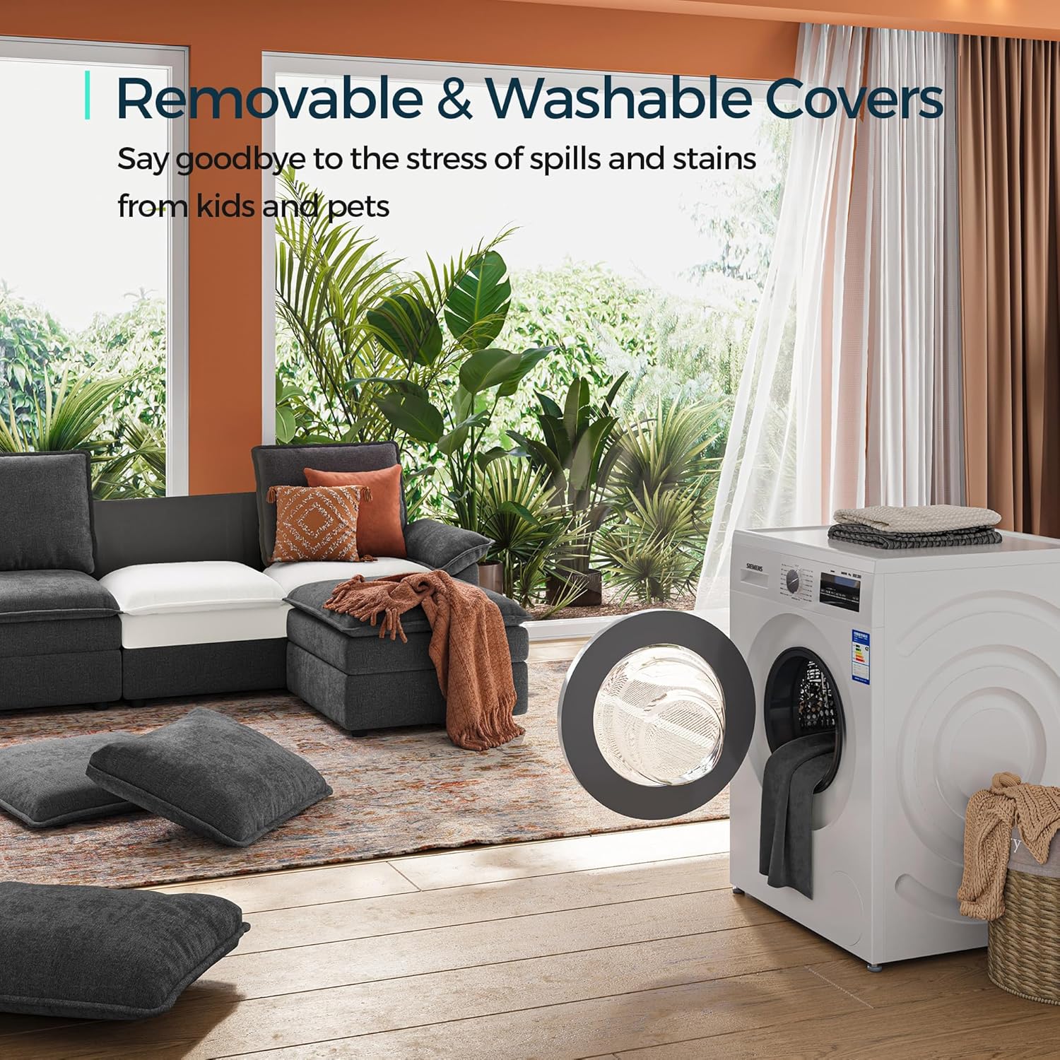 Built for Comfort & Durability: Crafted with eco-conscious, premium materials for lasting comfort and durability, this sectional sofa features a robust solid wood frame enveloped in soft, breathable polyester chenille, ensuring it feels luxurious while standing up to years of use.