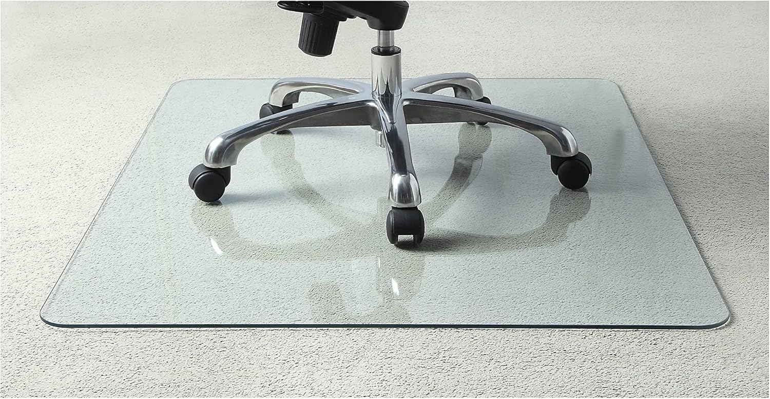 Tempered glass chairmat features a scratch-resistant design to protect your flooring while offering a smooth surface for your chair. Its durable material safely supports up to 1,000 lb. Easy-to-clean material wipes down quickly for simple upkeep. Chairmat is designed for any floor type including high-pile or low-pile carpet, hardwood, marble and more.