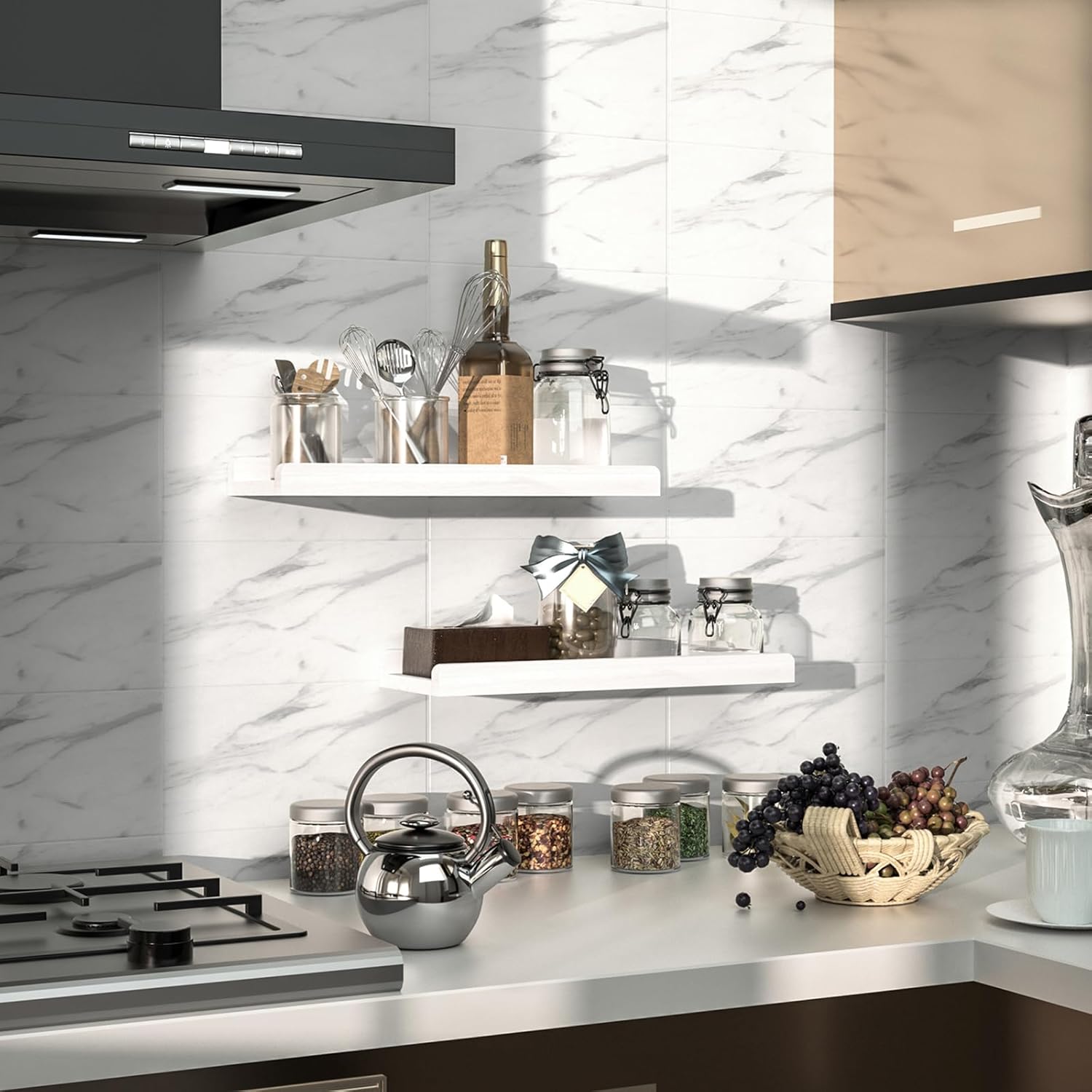 Love-KANKEI Floating Shelves Wall Mounted Set of 2, 17 Inch Rustic Wood Wall Shelves for Storage, Bedroom Living Room Bathroom Kitchen Office and More White